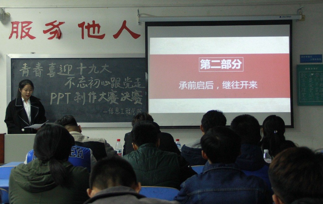 为学习贯彻落实党的十九大精神,弘扬新时代下的青春正能量,近日,山青“第十届计算机科技服务月”之“青春喜迎十九大,不忘初心跟党走” PPT制作大赛决赛在电教楼举办。