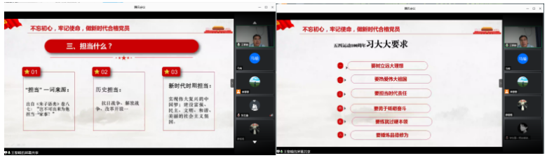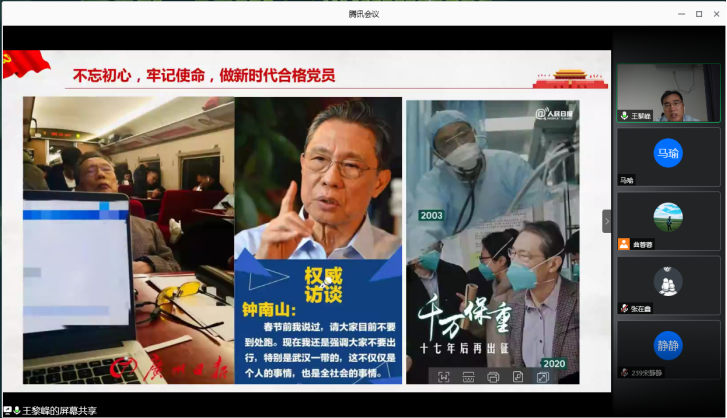 6月11日下午14时,信息工程学院党总支书记王黎峰以“不忘初心、牢记使命,做新时代合格党员”为题,在腾讯线上会议中为全体学生党员、发展对象以及入党积极分子讲了一堂生动的“云”党课。会议由信息工程学院党总支副书记马骋主持,全体辅导员参会。
