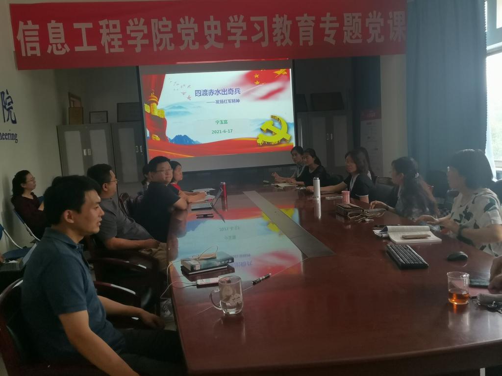 开展党史学习教育以来,信息工程学院党总支精心组织,扎实部署推进党史学习教育工作,学院党员领导班子成员和各党支部书记积极开展讲党课忆党史活动,掀起党史学习教育热潮。