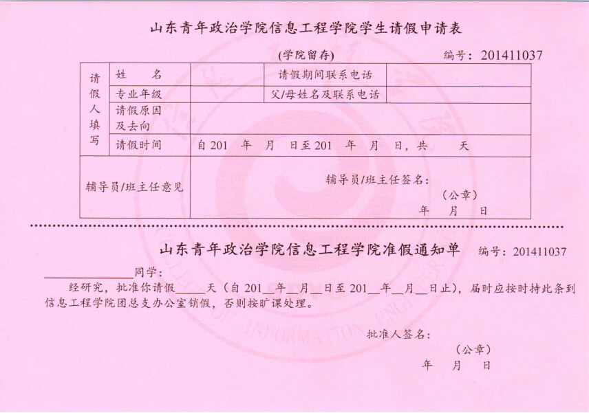 为保证学生请销假有章可循;各个班级设有纪律委员并采取“一条三层”请假制度,即请假学生先向班主任请假,班主任同意后找辅导员开假条,假条再交班级纪律委员,学生回来后,找纪律委员要回假条,再找辅导员销假,销假假条再归档保存。便于班主任、辅导员掌握一手信息,便于期末综合考核。
