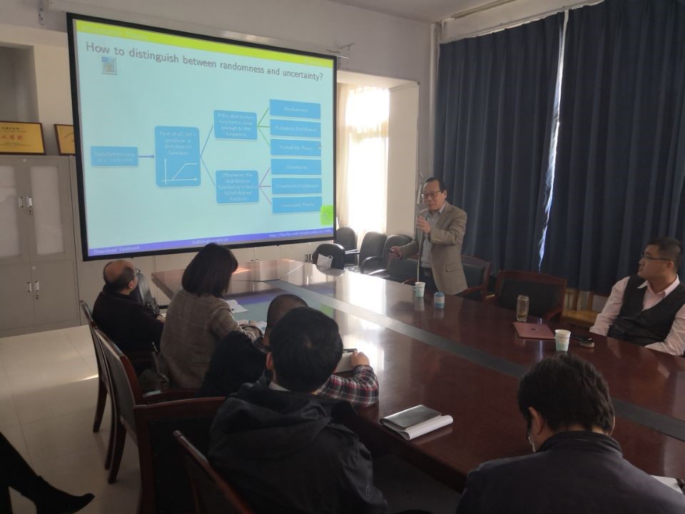 4月12日,由科研处主办、信息工程学院承办的第37期学术前沿论坛在笃行楼309会议室举行。清华大学博士生导师、不确定理论创始人刘宝碇教授做了题为《不确定理论》的学术报告;天津大学博士生导师赵瑞清教授做了题为《智能计算在公共安全中的应用研究》的学术报告。信息工程学院部分领导老师、信息管理与信息系统教研室和数学教研室部分成员共同聆听了报告。本次报告由信息工程学院院长宁玉富主持。