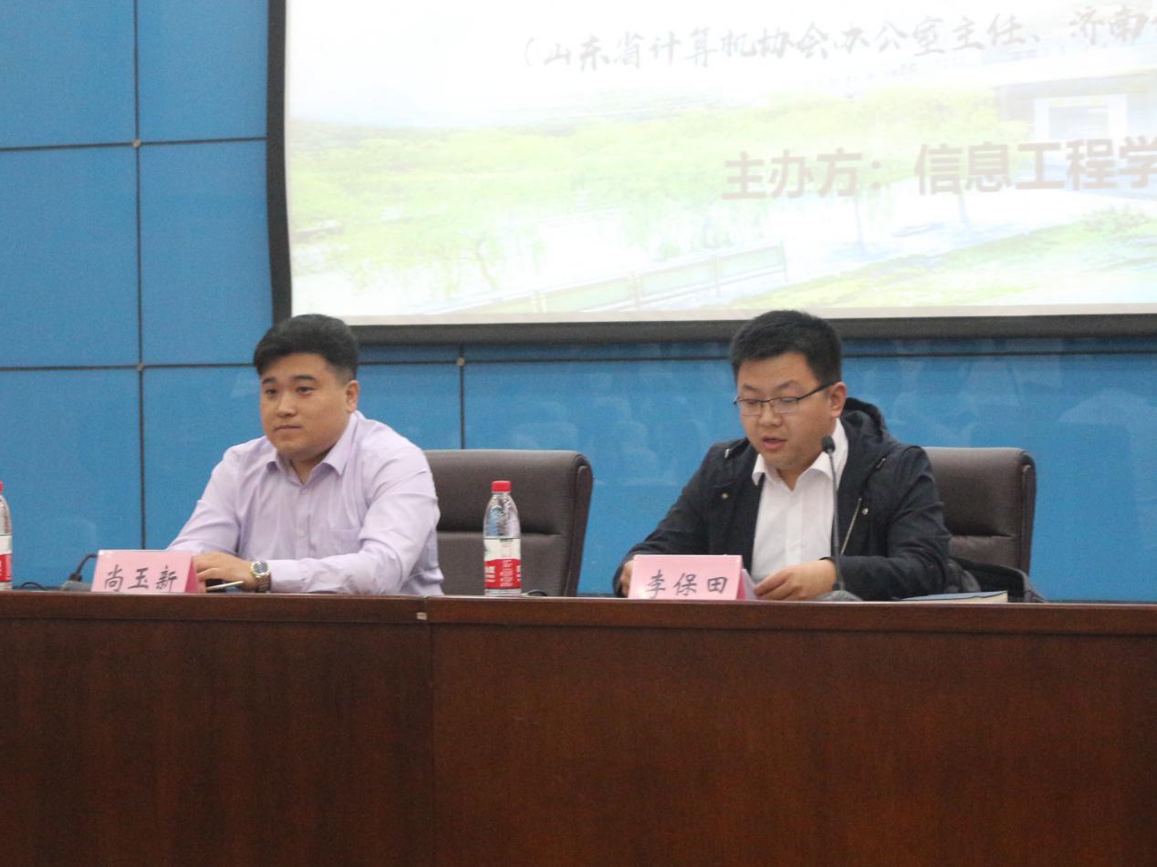 近日,山东省计算机协会办公室主任、济南计算机协会副秘书长尚玉新到我校,为信息工程学院师生作了题为《大学生的科技创新创业之路之科技竞赛》的专题报告会。会议由信息工程学院团总支主办,2017级计算机科学与技术专业和信息管理于信息系统专业学生聆听报告会。计算机科学与技术教研室主任李保田主持会议。