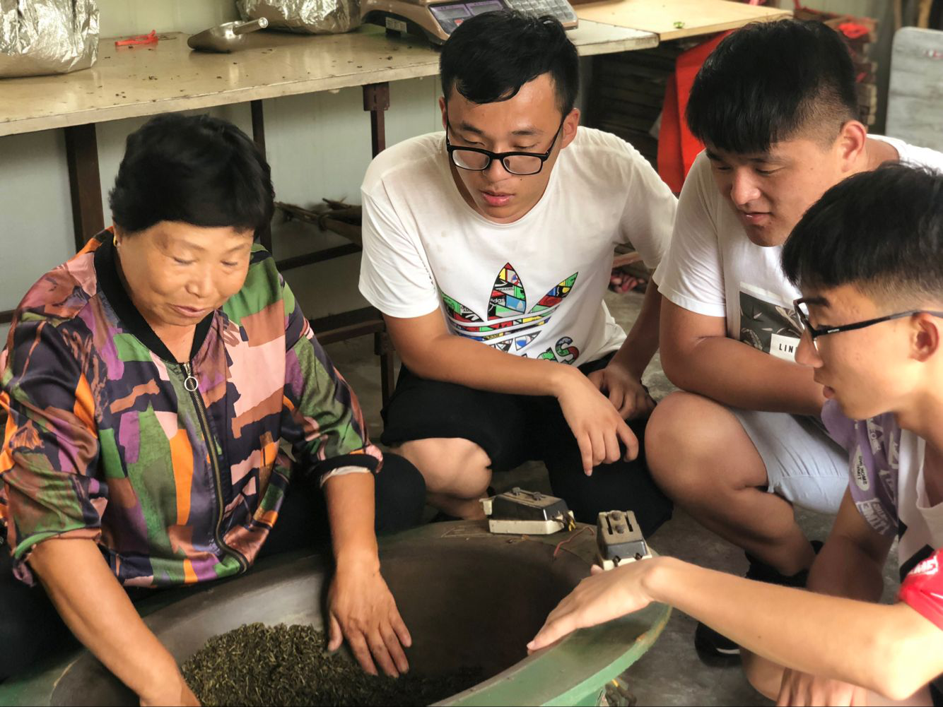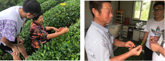 为了弄清采茶以及炒茶的传统工艺,村民带队员们走进茶园,向队员们介绍了如何采茶以及如何炒茶,在了解过程中我们发现,当地的采茶等工艺完全是手工完成,三百度的锅翻炒茶叶,不借助任何工具,全部用手来完成,这再一次让我们感受到了传统文化的神奇之处。