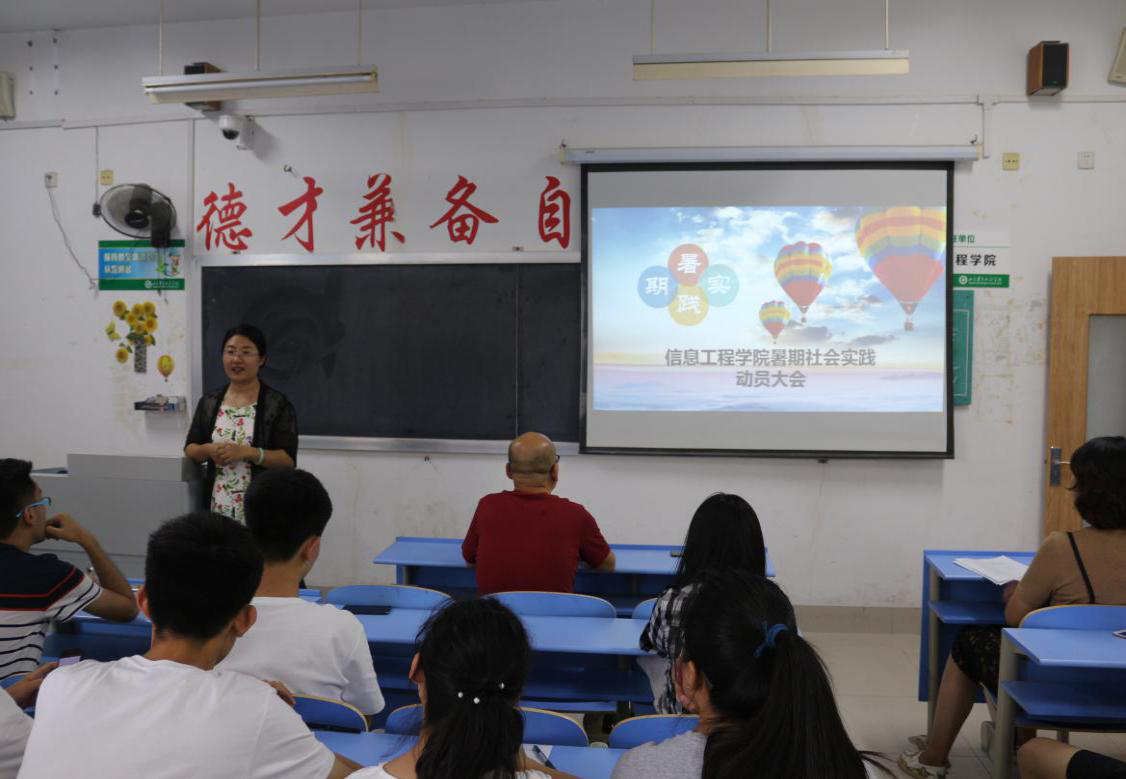为充分发挥社会实践在人才培养和社会服务体系的重要作用,为学校本科评估做出青春贡献。近日,信息工程学院于D303召开2018年暑期社会实践动员大会。党总支副书记张婷婷,辅导员赵可心、牛传允、曲蓉蓉及46支暑期社会实践团队负责人参加了此次动员大会。