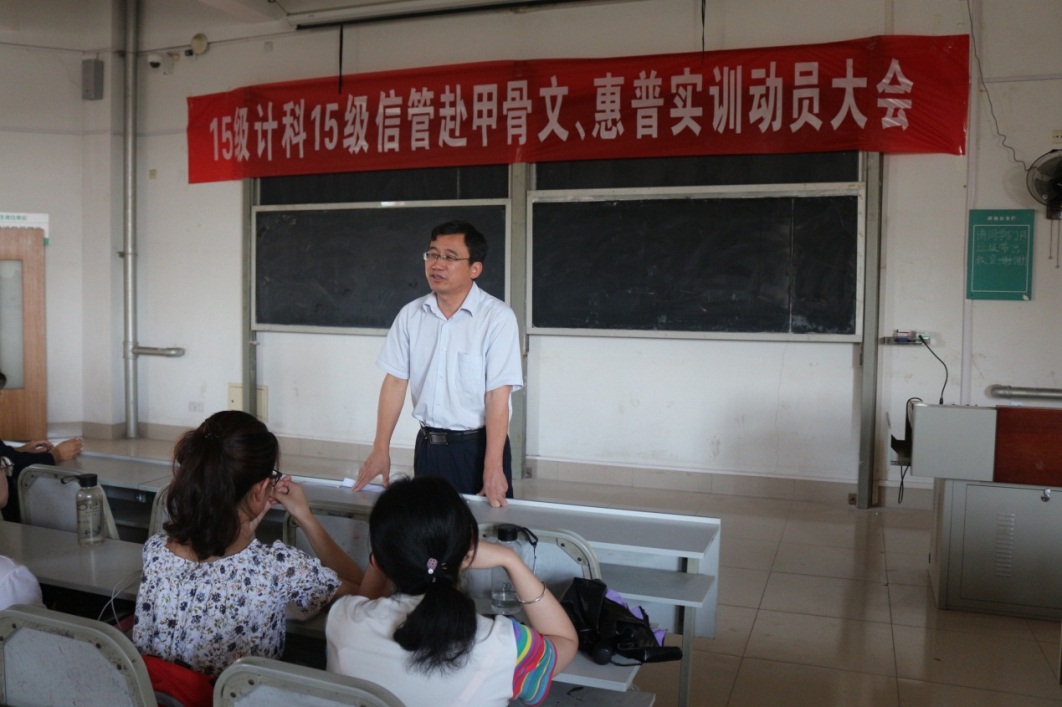 5月31日,信息工程学院在电教楼313召开2015级信息管理与信息系统专业、计算机科学与技术专业赴甲骨文(山东)OAEC人才产业基地(济宁)、惠普实习、实训动员大会。院长宁玉富、党总支书记李朝晖、副书记张婷婷及全体实训学生参加了大会。会议由副院长孟祥佳主持。