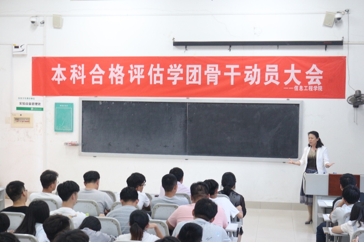 为扎实做好迎接本科教学工作合格评估工作,根据学校总体部署,结合实际,学院制定《信息工程学院本科合格评估学生工作组实施方案》,成立了以学院党政领导为组长的迎评工作小组。为积极推进本科合格评估的各项工作,5月24日,学院于电教楼311召开本科合格评估学团骨干动员大会。信息工程学院院长宁玉富,党总支书记李朝晖,党总支副书记张婷婷,辅导员曲蓉蓉以及全体学生党员、各级班长团支书、学生会主要学生干部、学院迎评创建工作小组成员参加了本次会议,会议由赵可心主持。