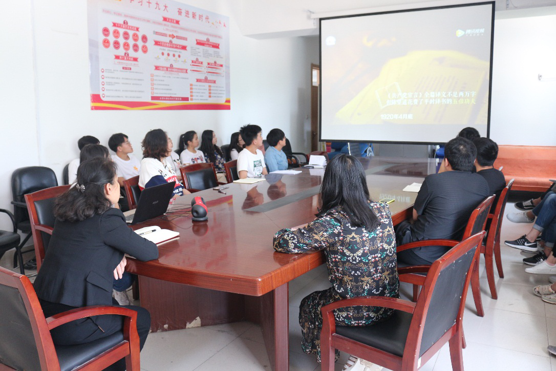 会议最后,李朝晖带领与会党员共同观看了微视频——《共产党宣言》的味道,要求各位党员可以追溯信仰的源头,多多开展自主学习,提升政治理论素养,在不断的学习讨论中品味真理的味道,深入体会马克思主义,争做新时代有为青年。