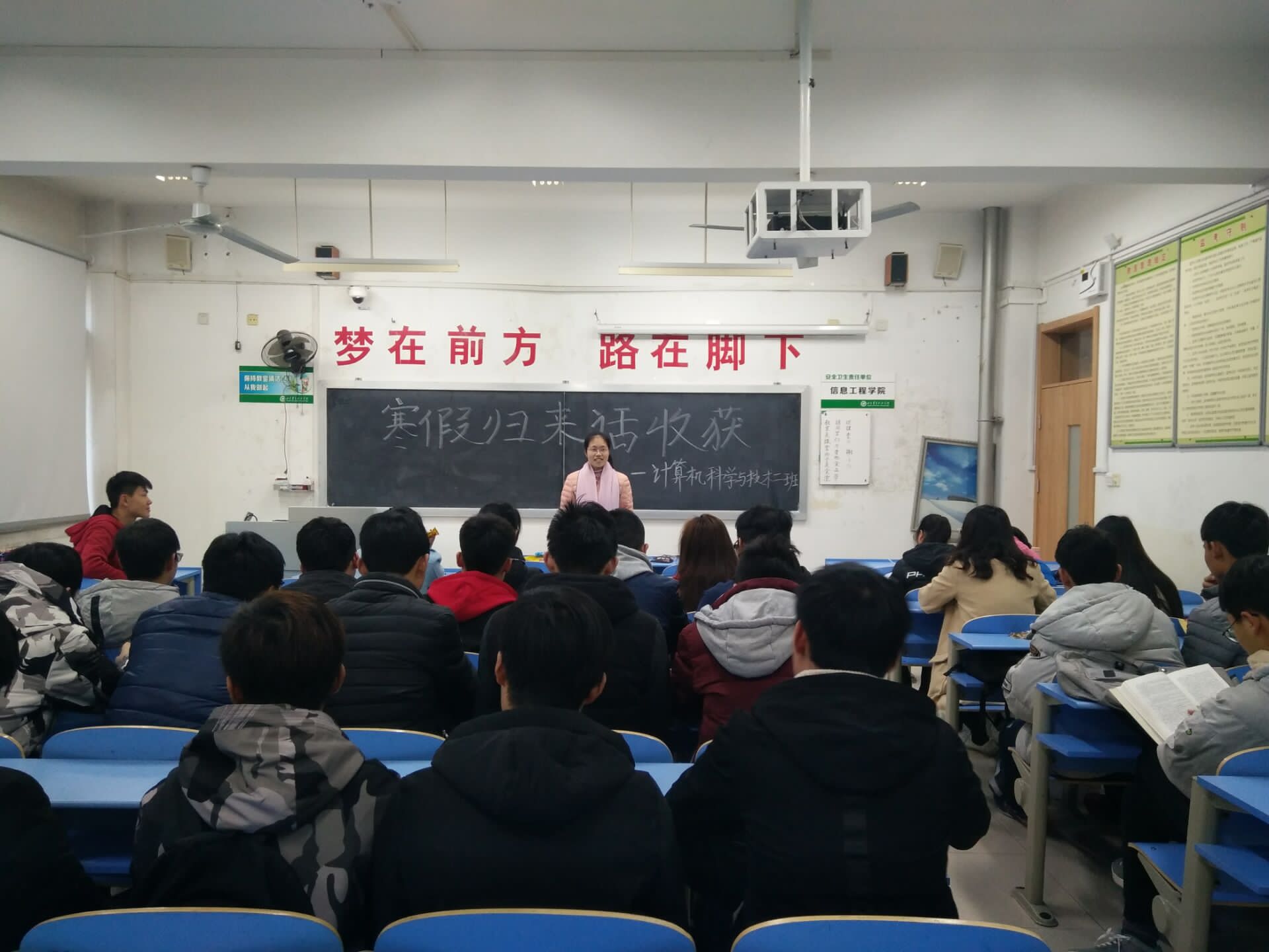新学期伊始,为使同学们更好地认识自我、增进交流,树立正确的人生观、价值观,以崭新的面貌,良好的精神状态,积极的学习态度开始新的征程,同时,为增强班级凝聚力,强化学生责任意识,提高学生综合素养,引导大学生走出校门,走向社会,投身社会,信息工程学院开展“寒假归来话收获”主题团日活动,团总支书记张婷婷、辅导员曲蓉蓉参与本次主题团日活动,走进基层团支部,与同学们一起话收获、谈感想。