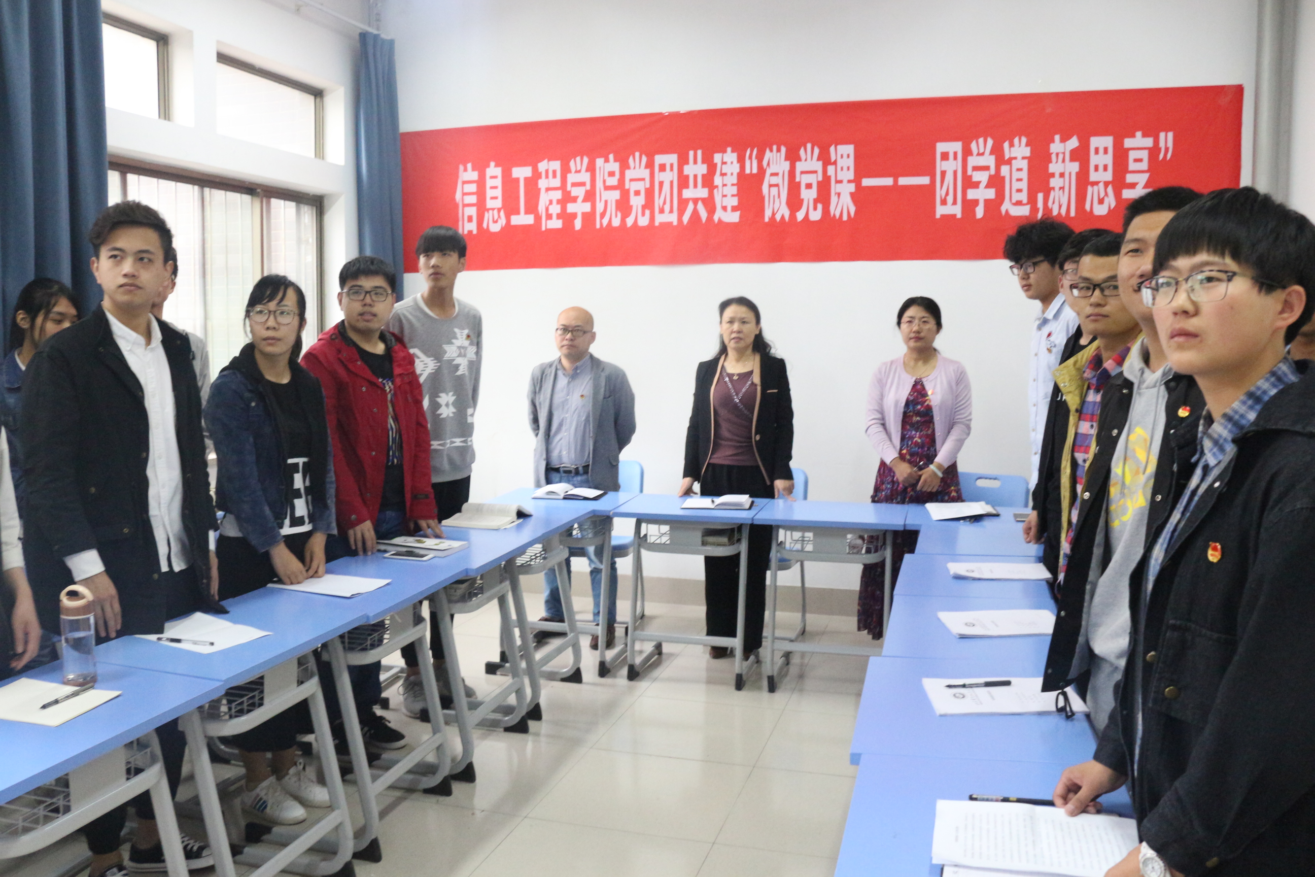 为纪念即将到来的“五四”青年节,提升大学生党员的党性修养,以党建带团建。4月25日,信息工程学院在D301召开了党团共建之“团学道,新思享”主题微党课,信息工程学院党总支副书记李朝晖、学生党支部书记张婷婷、牛传允以及学院全体学生党员和入党积极分子参加了此次会议。