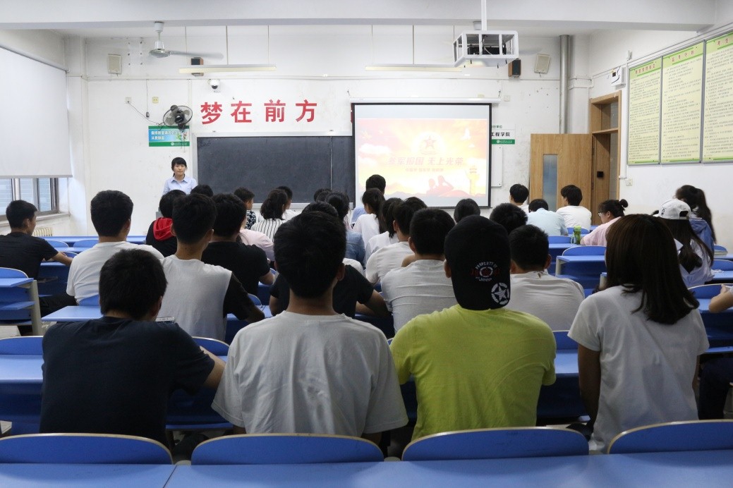 为进一步做好2017年征兵入伍工作,落实学校“开展征兵入伍宣传周活动的通知”要求,加强征兵入伍政策宣传,5月17日晚,信息工程学院举行2017征兵入伍政策宣讲会,会议吸引了全校100人左右参加。会议由信息工程学院退伍学生王玉洁担任主讲人。