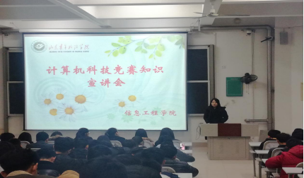 为响应科技服务月“炫我学子科普梦”的活动主题,11月25日,信息工程学院在电教楼412举行了计算机科技竞赛知识宣讲会,特邀14级优秀学生代表马骏、孙哲、边珍珠作为主讲人,16级全体新生参加了宣讲会。