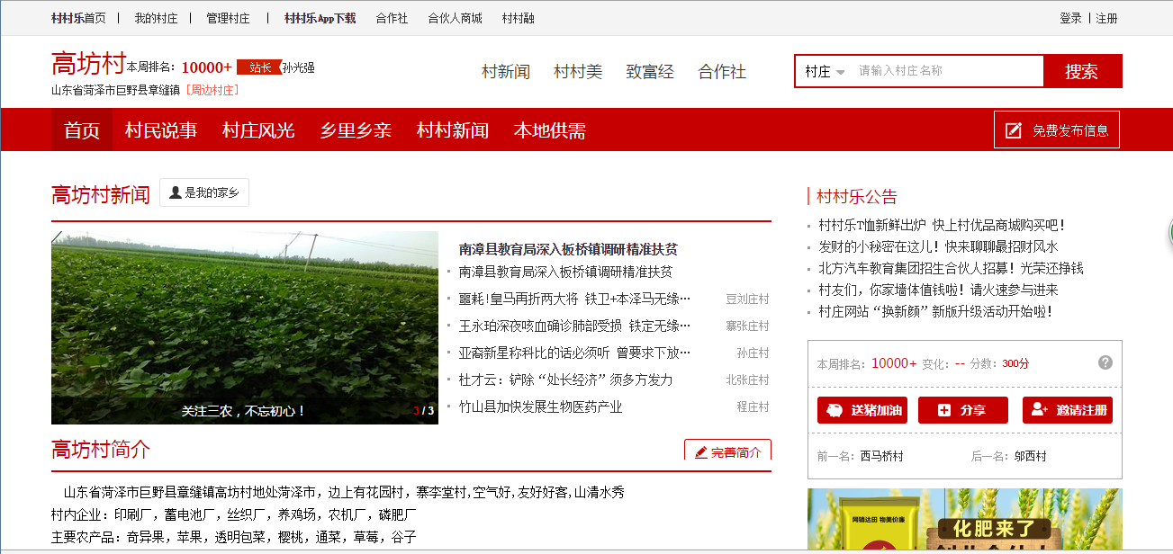 为推广展示高坊村村庄发展,提供相关的资讯信息,扩大村民间的交流和协作,共同发展,共同打造村民的沟通交流的网络平台。实践团帮助该村在中国农村网—村村乐上开通了高坊村专属网站,网站下开设了村民说事、村庄风光、乡里乡亲、村村新闻和本地供需等栏目,并将该村的农产品挂在了网站上。帮助村民开拓了农产品销售渠道,加强了与其他地区的联系和沟通,对提高高坊村的经济发展具有重要的作用。