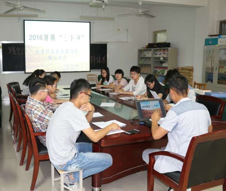 为充分发挥学校共青团的组织优势和大学生的智力优势,培养大学生社会责任感、使命感和实践能力,信息工程学院积极组织开展2016年“三下乡·千村行动”全省大学生暑期社会实践专项行动。6月5日,山青科技扶贫服务队成立大会在D305举行。本次成立大会由服务队队长石杨主持,全体队员参加了会议。