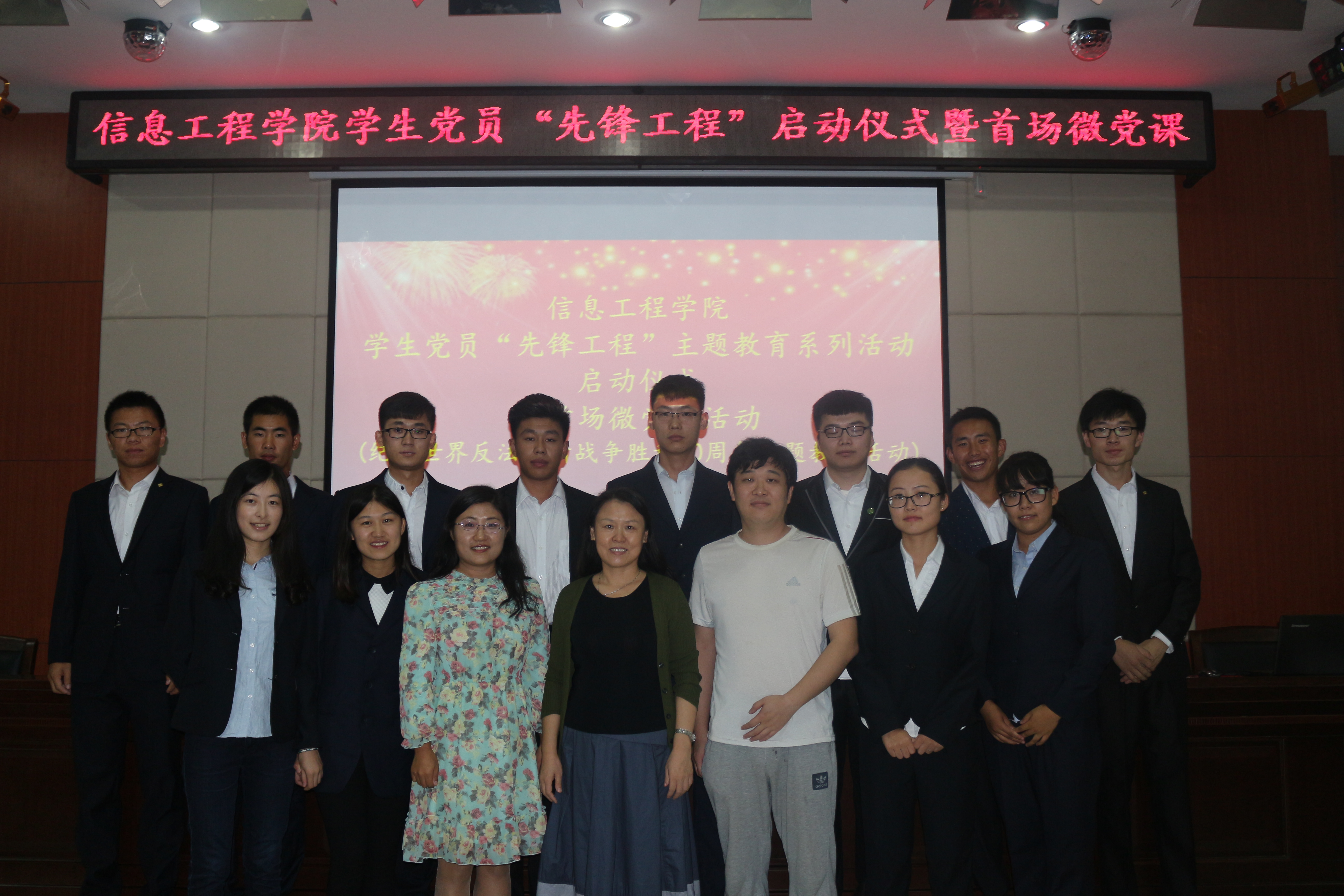 9月28日,信息工程学院学生党员“先锋工程”主题教育实践活动启动仪式暨首场“微党课”在7号楼培训教室成功举办。信息工程学院党总支副书记李朝晖、团总支书记张婷婷、办公室副主任赵可心、我院学生党员及2015级新生参加了此次活动。