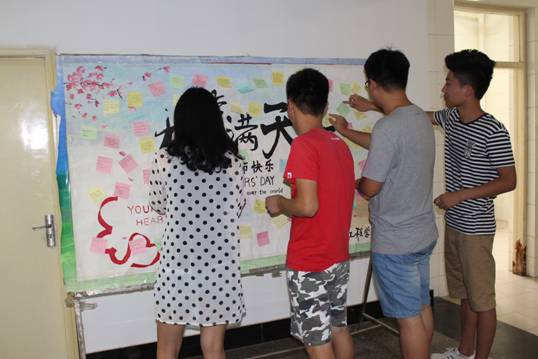 同学们把诚挚的祝福写在便利贴上,做成感恩展板,把祝福写在黑板上,在上课前,道一声老师您辛苦了,用简朴的方式,诚挚的语言,真诚的祝福,感谢师恩。百年大计,教育为本,教育大计,教师为本。在我们成长的道路上,正是这些有理想信念、有道德情操、有扎实知识、有仁爱之心的好老师,把自己的温暖和情感倾注到每一个学生身上,用欣赏增强学生的信心,用信任树立学生的自尊。教书育人,呕心沥血,默默奉献,教给我们知识、教给我们做人的道理。