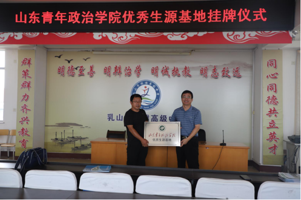 7月27日,院长宁玉富一行到乳山银滩高中进行优质生源基地建设工作。副校长王佐东等领导接待了宁院长。双方介绍了学校的情况,签署了合作共建协议,并举行了授牌仪式。