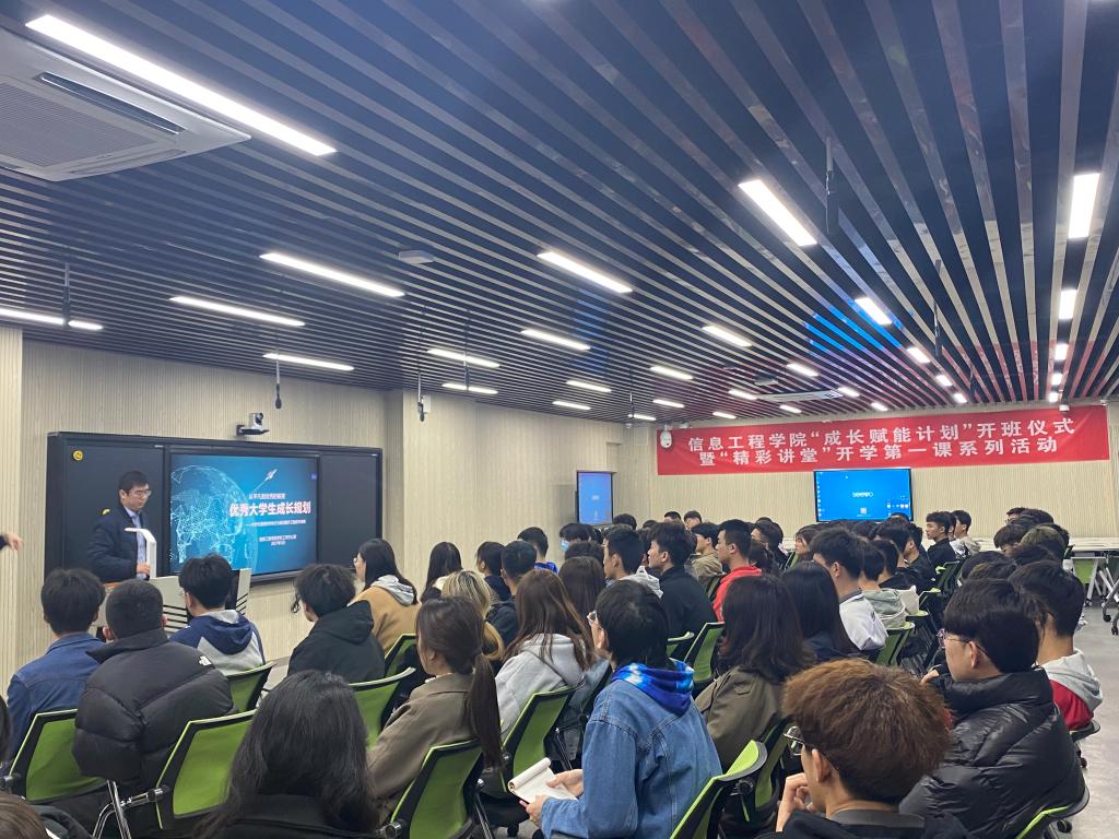 为帮助同学们更快适应大学生活,做好大学规划,不断提升综合素养,3月18日,信息工程学院举行精彩讲堂之大学生“成长赋能计划”开班仪式。信息工程学院党总支副书记马骋,全体辅导员,学院党员、学生干部及志愿者参加本次活动。开班第一课由马骋主讲。