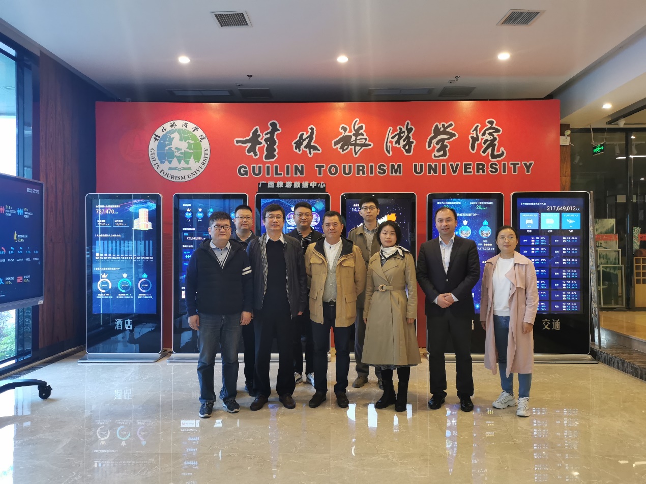 双方针对数据科学与大数据技术和旅游如何结合进行了深入讨论,在专业人才培养定位、课程体系建设、科研等方面进行了探讨和交流,认为旅游经济的发展为数据科学与大数据技术专业提供了良好的发展机遇,其应用前景非常广阔。会后参观了广西旅游数据中心。