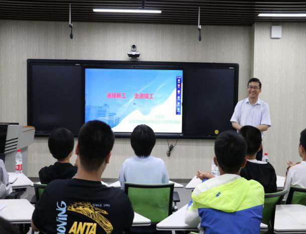实地参观结束后,高中学子聆听了以“选择新工、选择信工”为主题的讲座。院长宁玉富从走进信工、学在信工、乐活信工、成就信工、信工招生5个方面进行了详细的讲解。从学校的发展历程展开,介绍了信息工程学院各专业的基本情况、人才培养目标与思路和人才培养模式,提出学院对接企业深化产教融合,持续强化应用型办学实力的专业发展方向,同时强调信工学子就业前景广阔、薪酬高、发展潜力巨大等特点,并欢迎同学们报考山东青年政治学院。