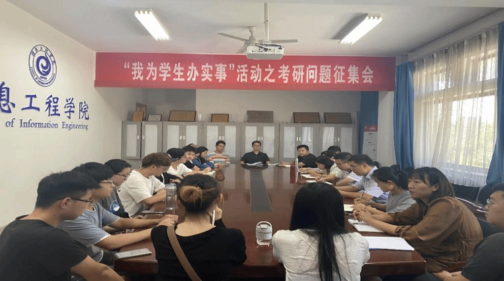 在2022年全国硕士研究生招考预报名临近之际,为帮助2022届考研学生科学备考,营造浓厚而积极的学习氛围,解决学生们备考过程中的急难愁盼问题,进一步推进党史学习教育与业务融合,信息工程学院于笃行楼309会议室开展了“我为学生办实事”考研主题问题征集座谈会。信息工程学院副院长郑磊、党总支副书记马骋,各专业教研室主任、毕业生辅导员、考研指导老师以及2022届考研备考学生代表参加了此次会议。