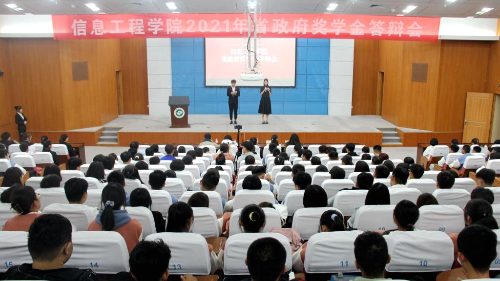 为了进一步推动学院学风建设,发挥榜样力量,强化奖学金的激励作用,信息工程学院于10月20日在图书馆西报告厅举行2020-2021学年省政府奖学金答辩会,2021级全体新生观看了答辩会。信息工程学院党委书记王黎峰,辅导员曲蓉蓉、马瑜、白玉、李恒担任本次答辩会评委。