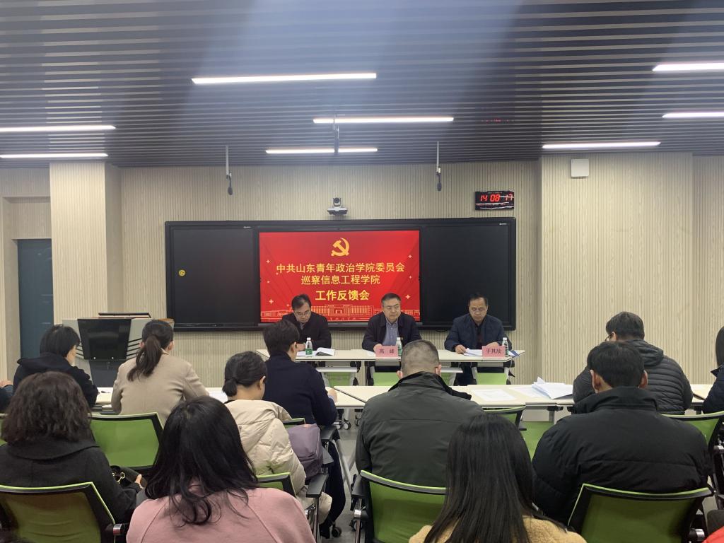 根据学校党委巡察工作部署,2月25日下午,在知行楼509会议室召开巡察工作反馈会。学校巡察工作领导小组副组长、党委副书记高峰,巡察组组长于其欣及巡察组成员出席会议,信息工程学院党委班子成员、全体教职工参加会议。会议由学院党委书记王黎峰主持。