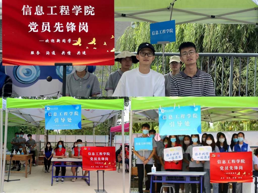 为充分发挥学院师生党员在迎新工作中的先锋模范作用,学院设立“党员先锋岗”和“绿色通道”,第一时间将各项任务落到实处,为新生提供高效便捷的暖心志愿服务,充分展现了信息工程学院师生党员担当奉献的精神风貌。根据新冠肺炎疫情防控要求,陪同新生前来报到的家长及车辆不能进入校园,学院招募学生志愿者100余名,负责引导新生报到。帮忙搬运行李、登记新生个人信息、办理入学手续、查看宿舍分配、耐心答疑解惑等等,志愿者们分工协作、密切配合,为新生和家长提供了热情、周到、高效、优质的服务,圆满完成各项迎新工作。此外,学院为新生精心制作迎新指示牌、拍照打卡板,供大家拍照留念,助力新生快速融入学校生活。