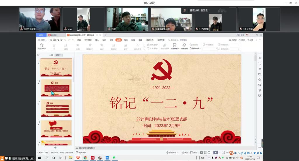 各团支部积极响应院团委的号召,积极参加到主题团日活动当中,各支部积极整合资源、发动班团力量,开展“一二·九”专题历史学习,通过播放幻灯片,观看视频文字材料,让团员们深入体会“一二·九”精神,激励广大团员坚定信念,奋发有为。