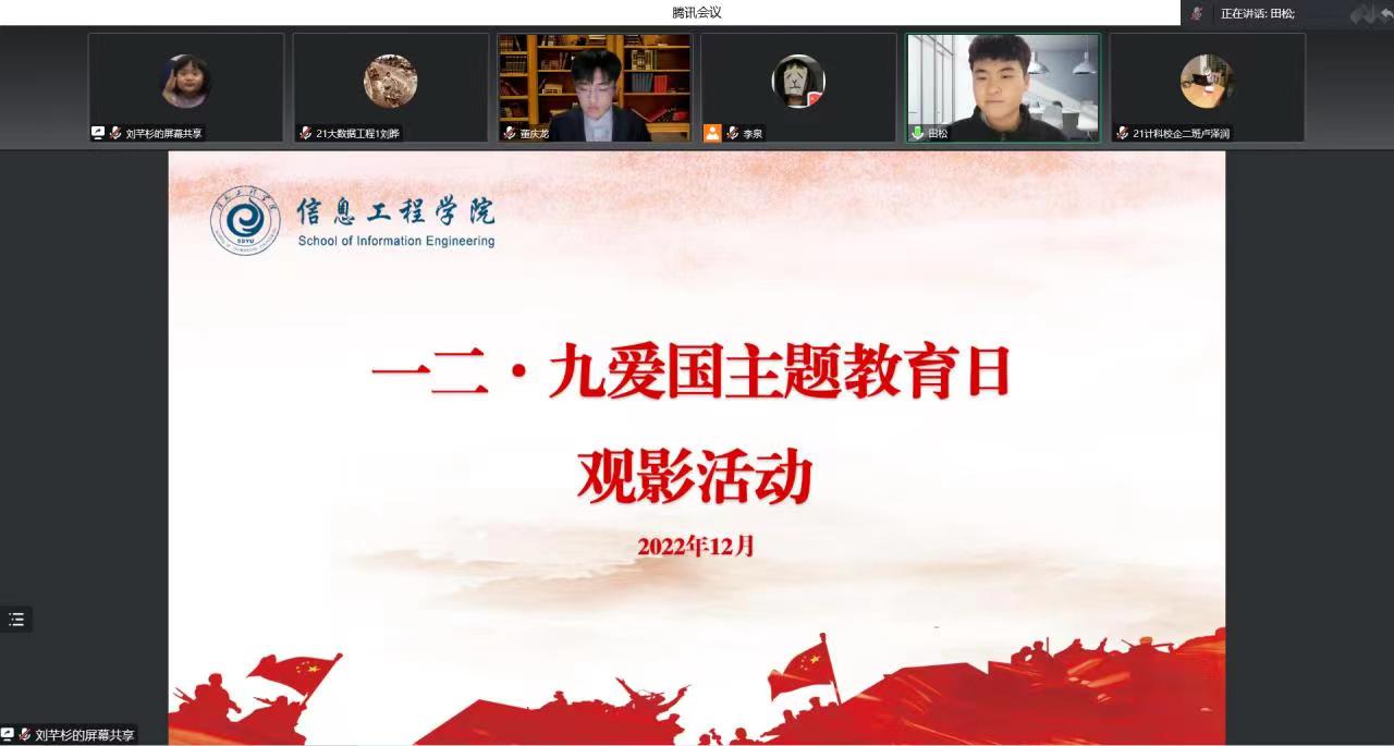 为弘扬“一二·九”精神,深入学习宣传中国共产党人精神谱系,引导激励广大青年学子厚植爱国情怀、坚定报国之志、传承红色基因,学习践行二十大精神,争当新时代好青年,近日,信息工程学院组织开展“一二·九”爱国主题教育日活动。