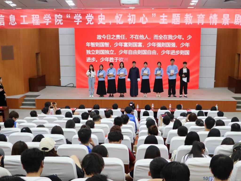 据悉,本次“情景剧党课”作为信息工程学院党委开展主题教育的实践活动之一,排演时间历经两个月。学生党员、入党积极分子以及学生干部,在对党的基本理论知识和历史资料深入学习的基础上,自主完成剧本创作、角色设定、情景创设与编排演练,分别演绎了中共一大、抗日战争、解放战争、新中国成立以及改革开放以来的历史故事,讲出党课新意和“心”意。