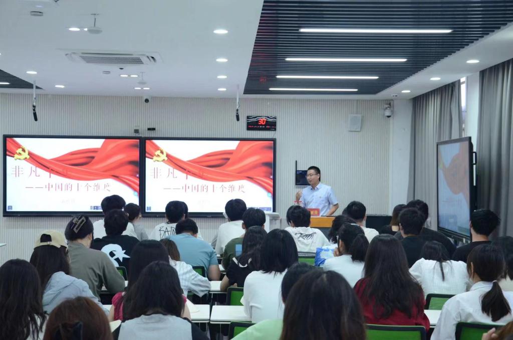 非凡十年路,奋斗谱华章。一项项重点工程、一个个国之重器、一次次创新突破……十年来,中国经济社会发展、生态环境变化真真切切、可触可感。孟书记从十个维度独特标识给大家讲述中国的非凡十年,为大家呈现了一堂主题鲜明、生动活泼的“思政大课”,此次党课主题教育活动进一步增强了同学们的党性意识,提高了思想政治素养,有力推动了学院思想教育工作的开展。