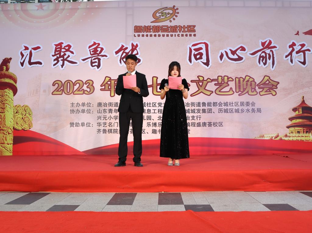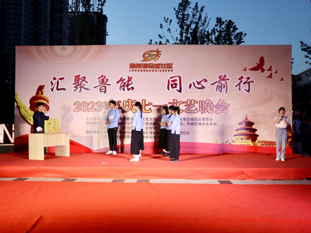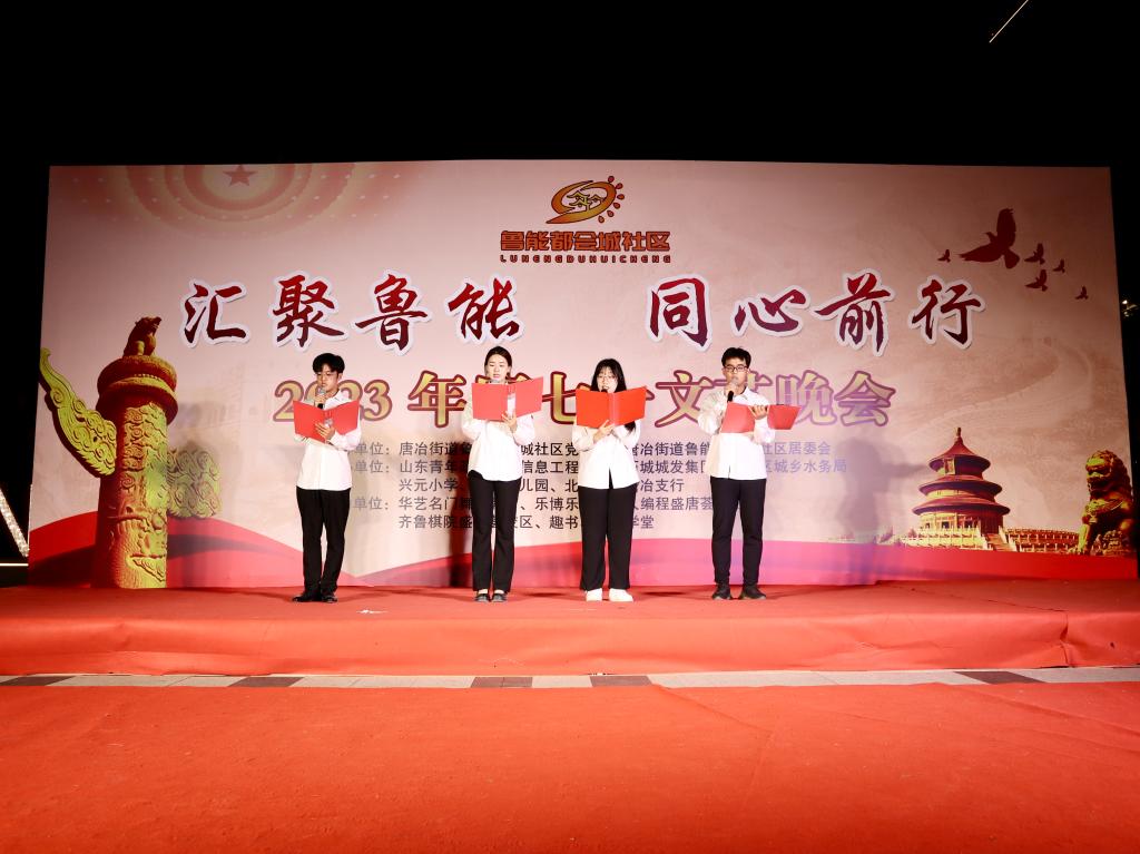 为扎实开展学习贯彻习近平新时代中国特色社会主义思想主题教育,庆祝中国共产党成立102周年,积极响应山东省“百万大学生进社区”社会实践工作安排,实现校地文化的同频共振,6月30日晚,唐冶鲁能都会城社区于盛唐荟商业街广场举办“汇聚鲁能 同心前行”庆七一文艺晚会,信息工程学院党委副书记马骋、全体辅导员、部分团员参与。