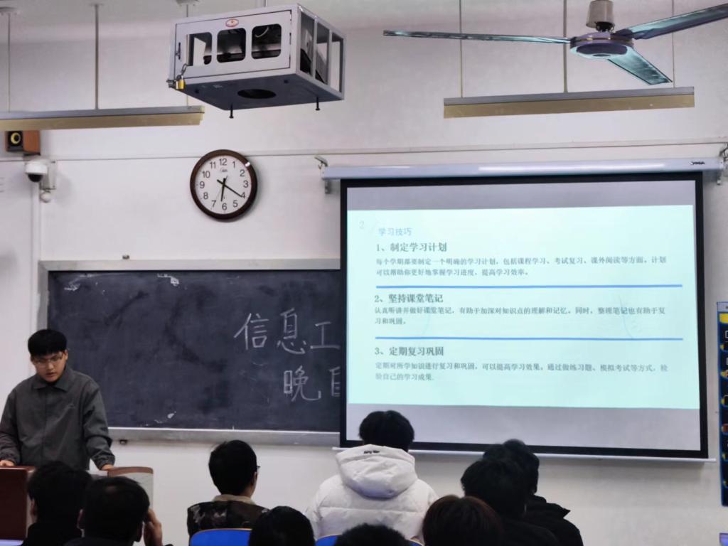 为激发同学们的学习热情,推广高效的学习方法,发挥朋辈的榜样引领作用,引领学生更好适应大学学习节奏,搭建良好学习沟通平台,12月13日,信息工程学院于笃行楼举办学习笔记学习方法分享会,学院2023级学生参加,2023级班级学习委员主讲。