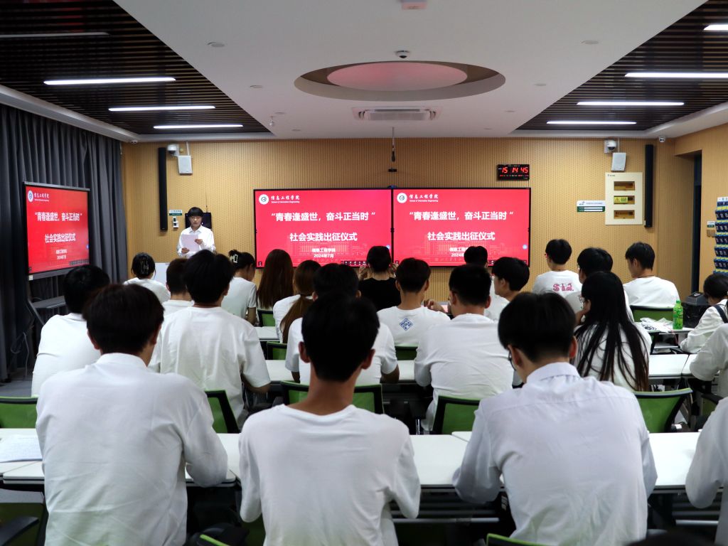 为深入学习践行习近平新时代中国特色社会主义思想和党的二十大精神,提升学院社会实践水平,引领青年学子在社会实践中汲取智慧、锤炼才能、奉献社会,7月5日,信息工程学院于知行楼504举办暑期社会实践出征仪式,学院辅导员任文欣、社会实践团队成员参加。