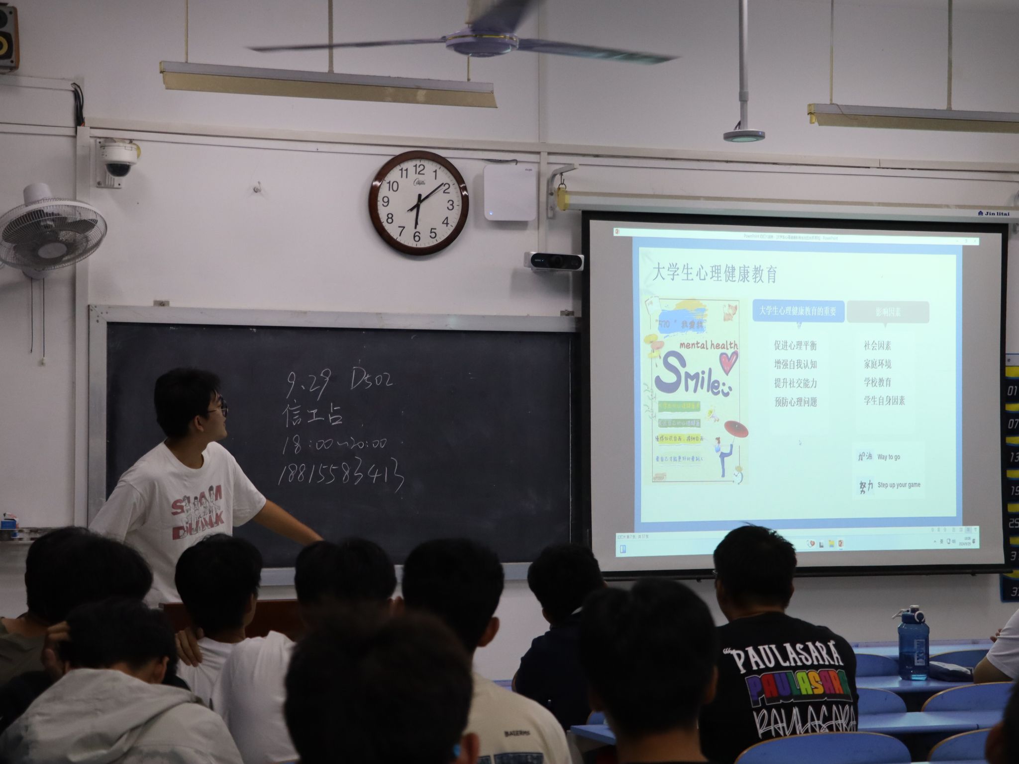 9月29日,信息工程学院健康发展部组织开展“新起点,“心”出发”大学生心理健康教育走进新生团支部活动。通过心理健康知识科普、现场演示学校心理健康咨询预约流程、3分钟冥想体验等活动,从理论和实践上进一步引导2024级新生正确看待心理健康问题,快速适应大学的学习和生活。