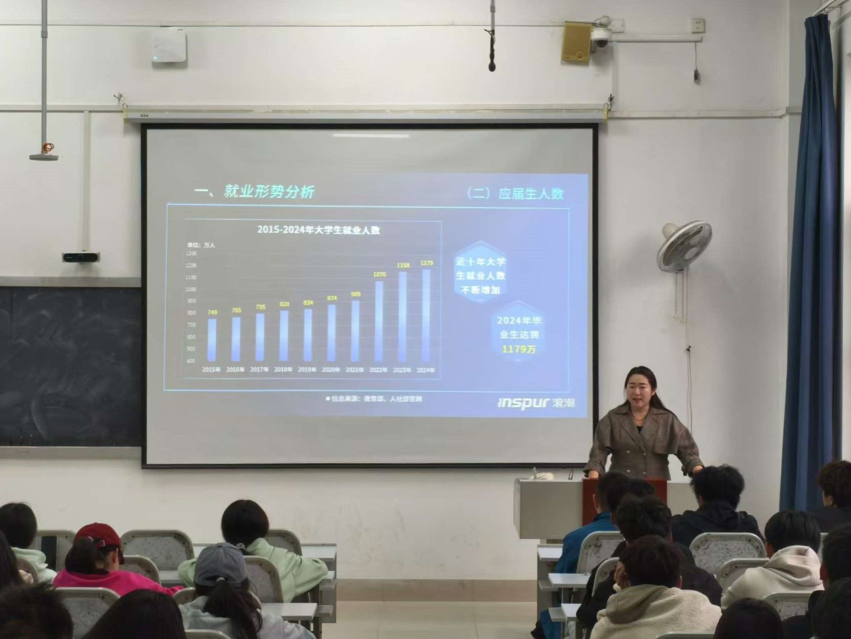 为深入学习贯彻党的二十届三中全会精神,强化实施就业优先战略,扎实推进大学生实习就业工作,11月14日,信息工程学院组织开展2024年第五期企业招聘与就业指导宣讲会。山东浪潮优派科技教育有限公司校企辅导员贾蓓受邀宣讲,学院部分2025届毕业生、2022级全部学生参会。