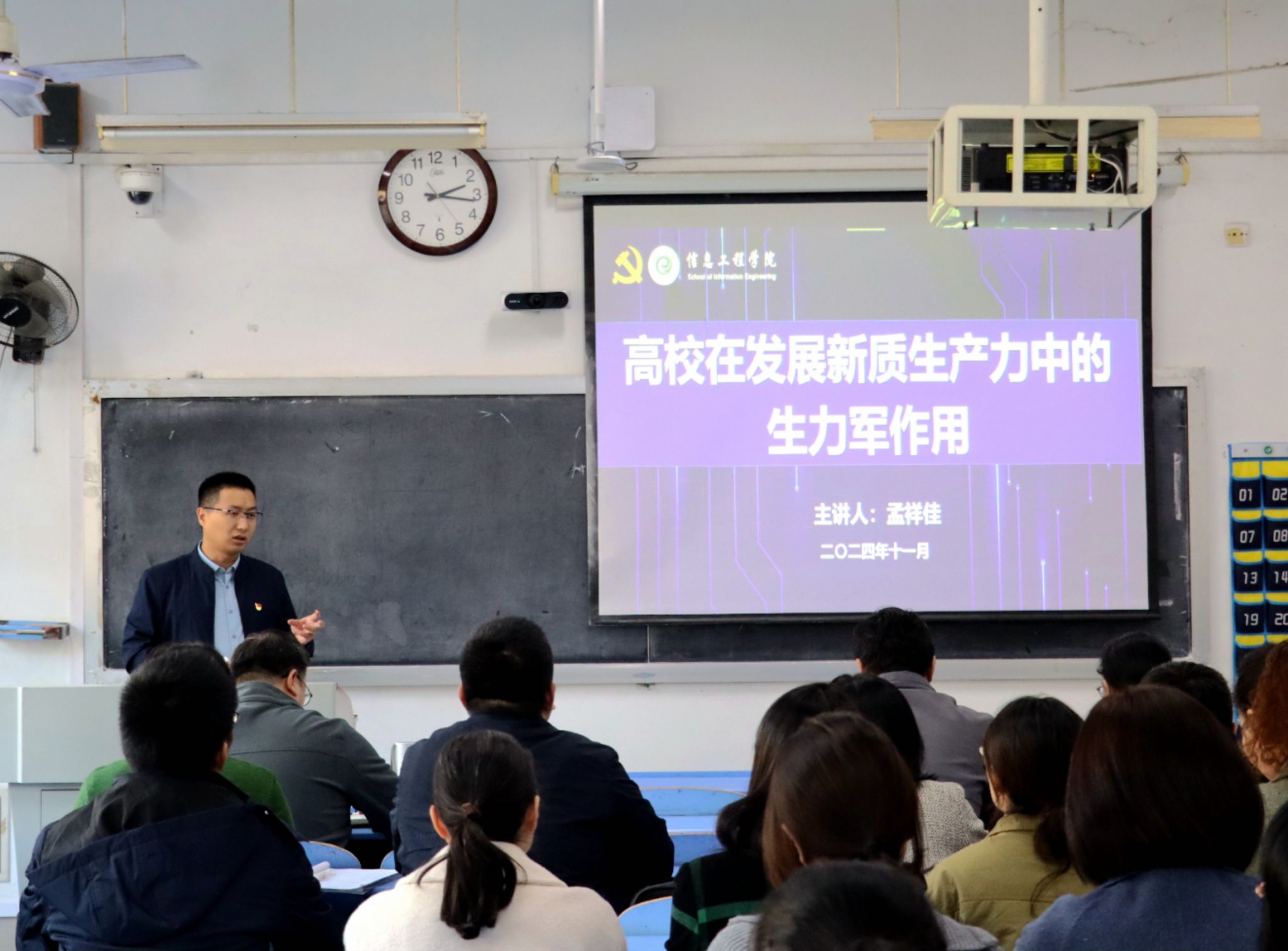 为贯彻落实党的二十届三中全会精神,全面贯彻党的教育方针,切实增强基层党组织政治功能和组织功能,11月下旬,信息工程学院开展党委书记、党支部书记讲党课专题教育活动。