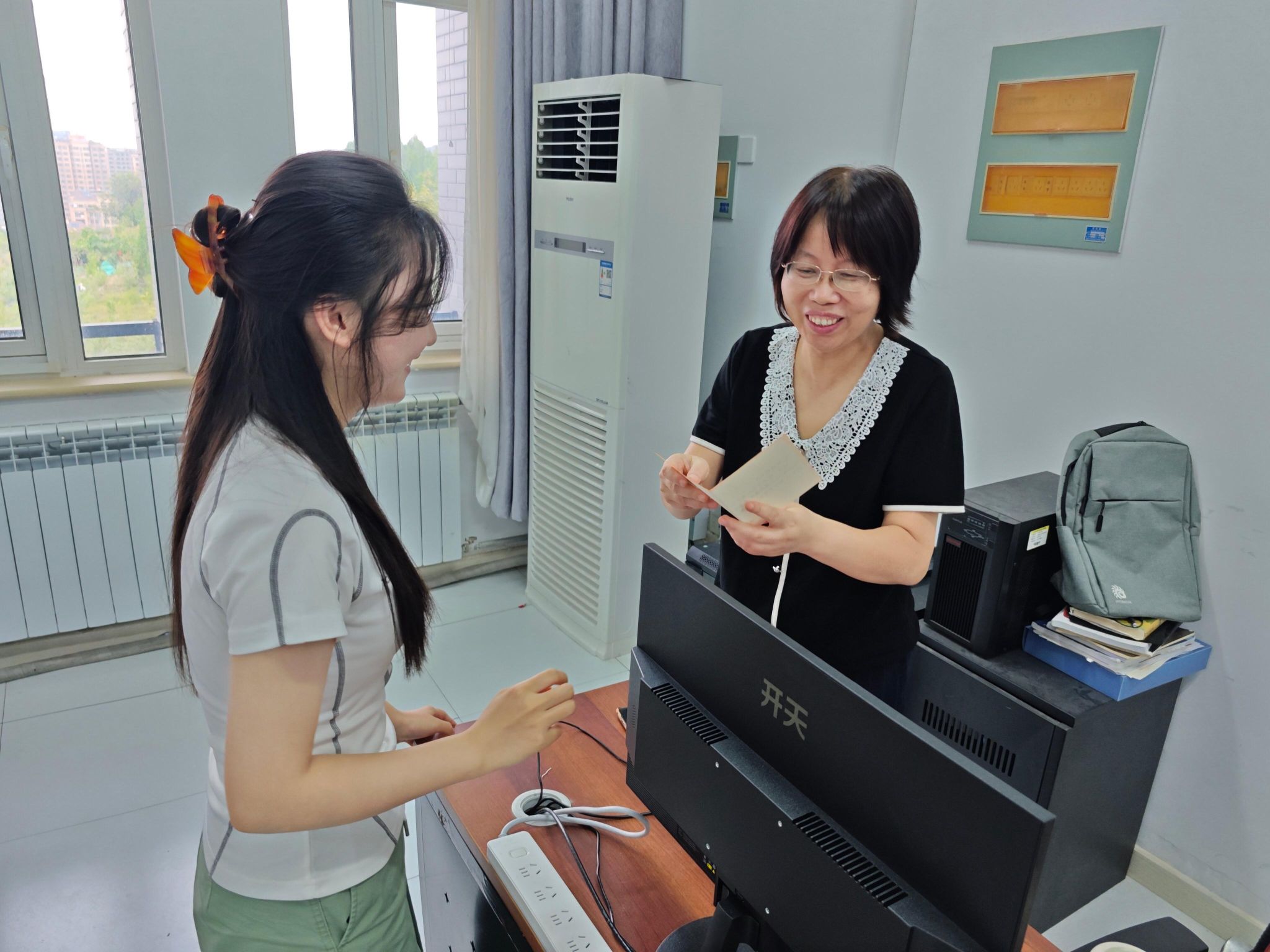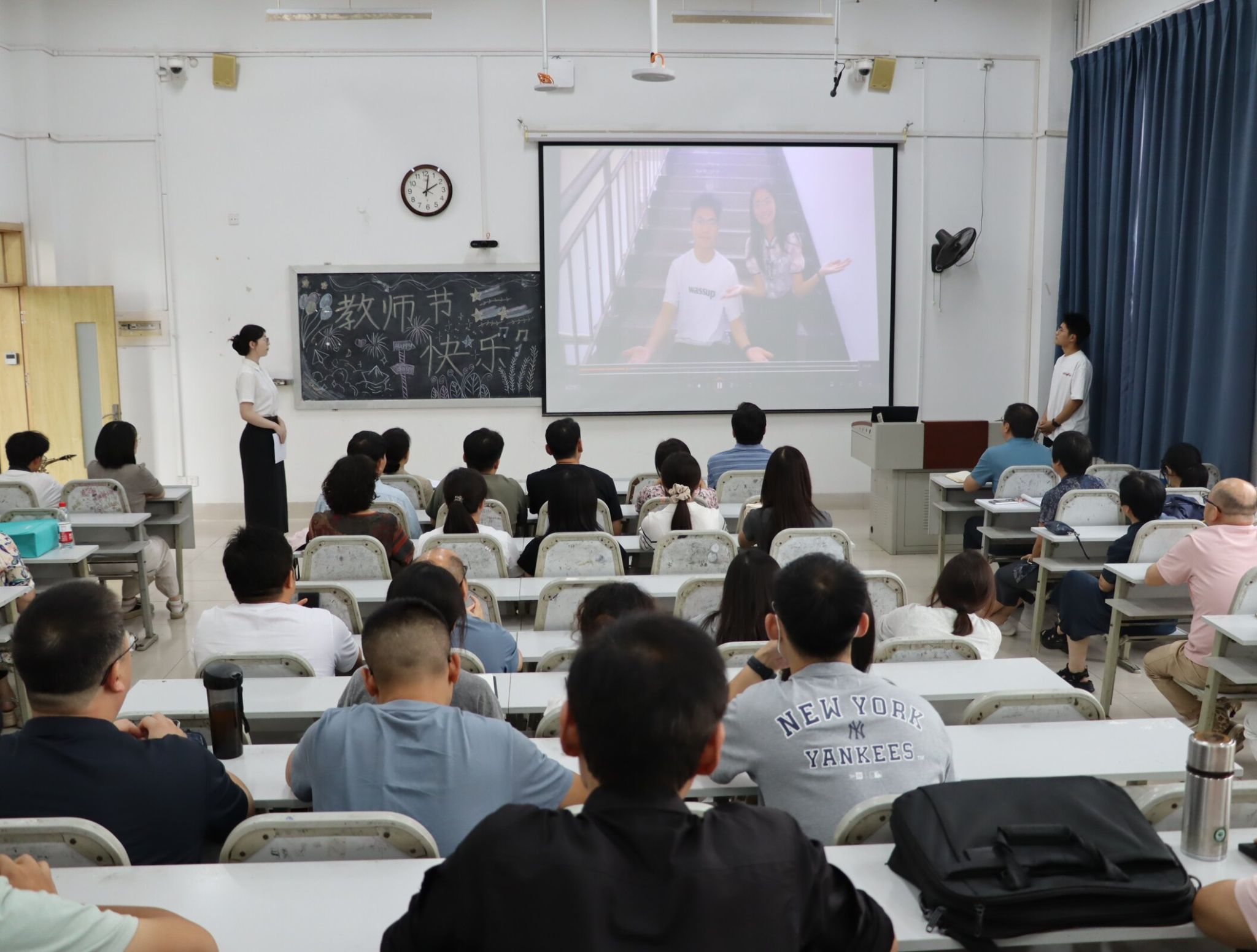 信息工程学院例会现场,大屏幕上循环播放着学生代表们精心拍摄的教师节专属祝福视频。同学们用真挚的话语,搞笑幽默的夸张动作重现了与老师们相处的温暖瞬间,讲述老师在学业指导、生活关怀中的点滴付出。“《世界上那么多人》,而您成为了我们的老师,为我们健康生活和成长成才保驾护航”,伴随着悠扬的萨克斯旋律,学生代表们将提前制作的手工贺卡送给最敬爱的老师,卡片上稚嫩的绘画、工整的字迹,满载着同学们对老师的敬意与祝福。