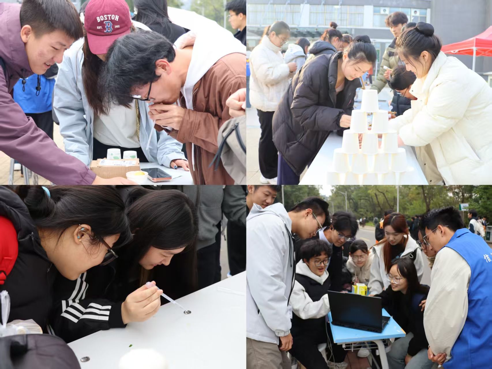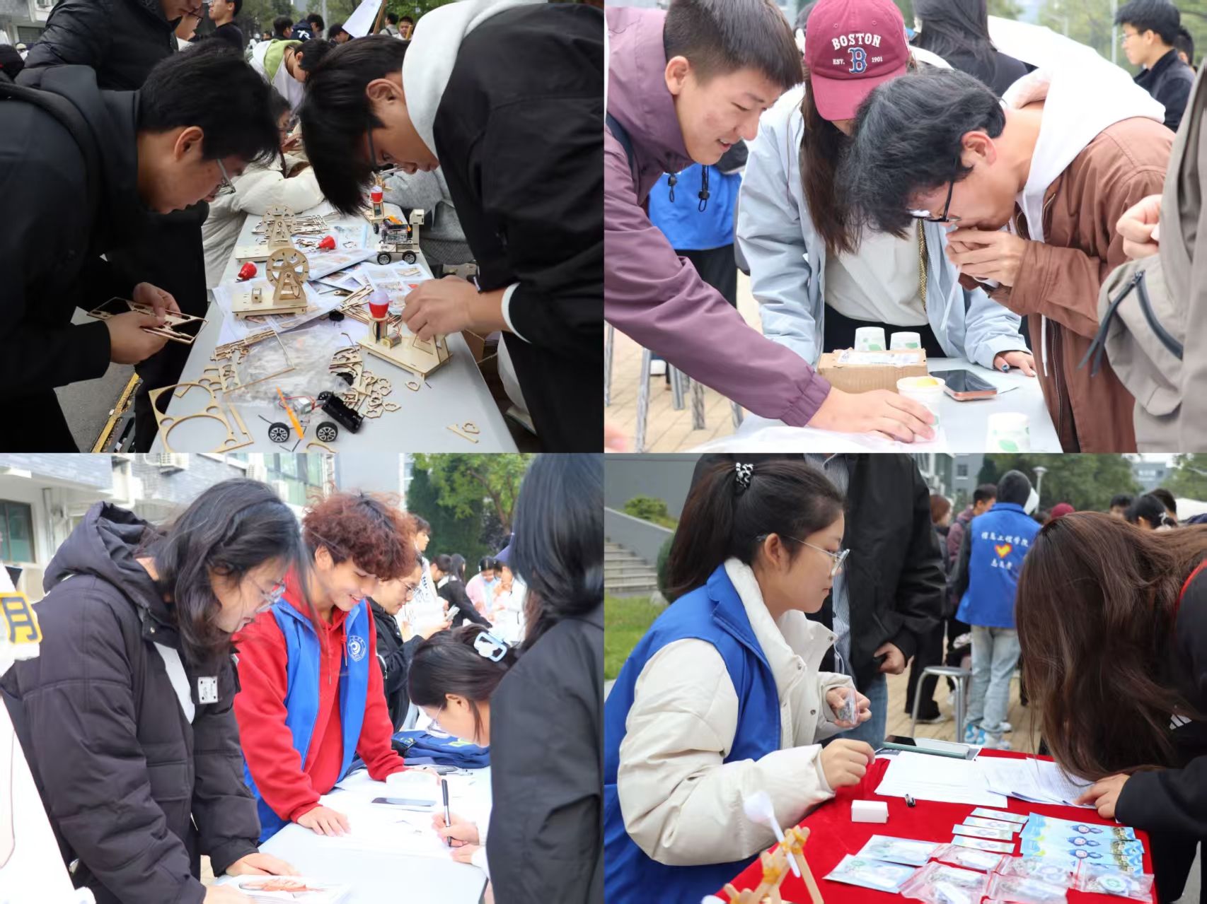 本届科技服务月内容丰富多彩,涵盖实践、益智与体验三大类板块共计11项活动。活动现场吸引了众多学生驻足体验。同学们既可投身投石机创意竞技、逻辑“扫雷”挑战,也可体验数据挖掘的编程世界,或在“IT义诊”中解决电脑软硬件问题。此外,“水的‘膜’法”实验、瓶盖不倒翁、科技问答闯关等项目也同步开展。为提升互动性与参与感,活动还设置了定制兑换券机制,师生通过参与项目获取兑换券,可至奖品区换取相应礼品。校园内还隐藏多个“青小蓝”NPC互动点,完成指定任务即可获得额外奖励,激发师生开启一场别开生面的“校园寻蓝之旅”。值得特别关注的是,在活动筹备阶段,各版块的活动海报均是由同学们利用旧展板与闲置物料创意改造而成,既体现了环保理念,也呼应了本届“创新赋能,绿色实践”的主题,成为现场一道独特的“绿色风景线”。