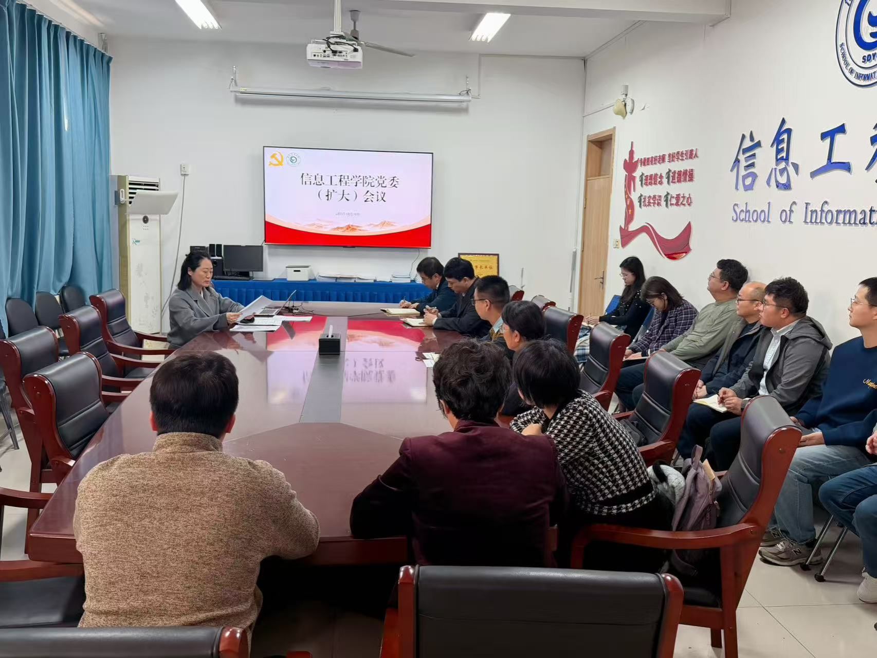 10月30日,信息工程学院召开党委委员(扩大)会议,专题传达学习党的二十届四中全会精神,研究部署学院贯彻落实工作。学院党委书记张蕾主持会议,学院班子成员、各党支部书记、教研室主任、科级干部等相关同志参加会议。