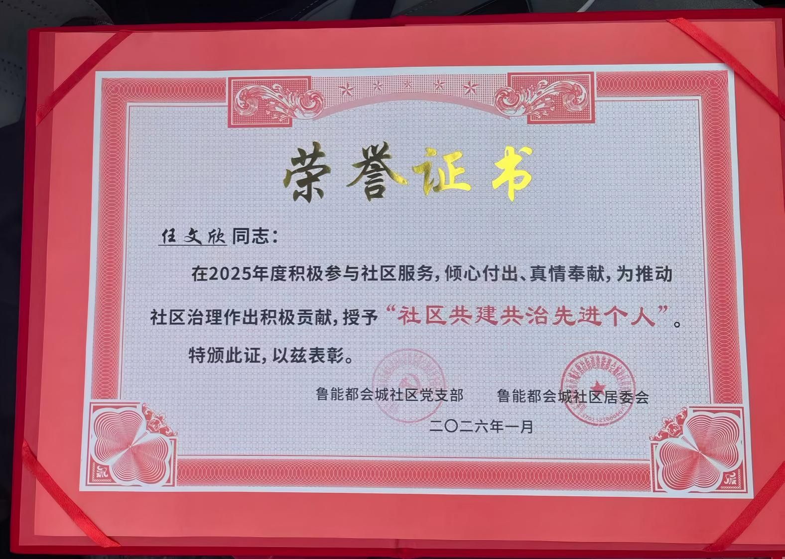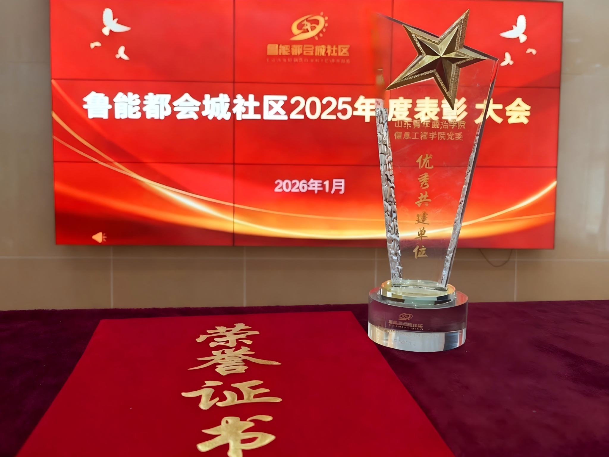 1月30日,信息工程学院党委再度获评“优秀共建单位”称号,连续两年荣获鲁能都会城社区党支部表彰。同时,学院辅导员任文欣获评“社区共建共治先进个人”荣誉称号。学院党委与个人同获表彰,充分体现了校地共建工作的系统成效与深度融合。