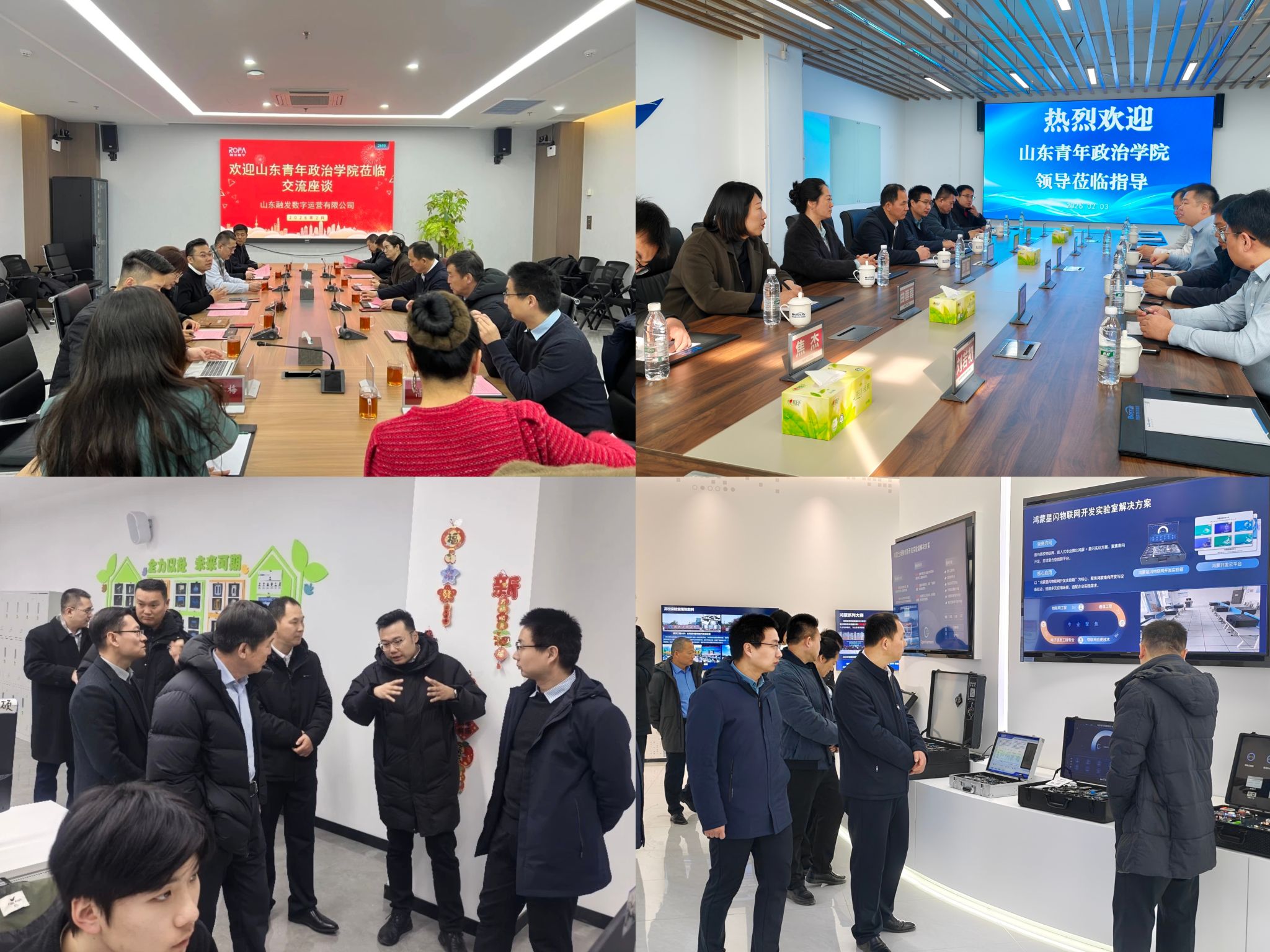 访企拓岗强精准对接。2月2日,学院党委副书记、院长孟祥佳陪同学校党委副书记、院长辛杰赴济宁,考察网易融发数字内容生产基地与腾讯云・融发数字经济人才培养示范基地。双方围绕数字孪生、大模型开发等前沿方向展开交流,并就共建产业学院、强化学生技术应用能力达成初步合作意向。2月3日,学校党委副书记、院长辛杰带队,学院党委副书记、院长孟祥佳,党委书记张蕾一行走访济南博赛网络技术有限公司。座谈会上,双方围绕人才培养、实习实训、扩大岗位供给等方面进行深入交流,进一步夯实了校企协同育人合作基础。