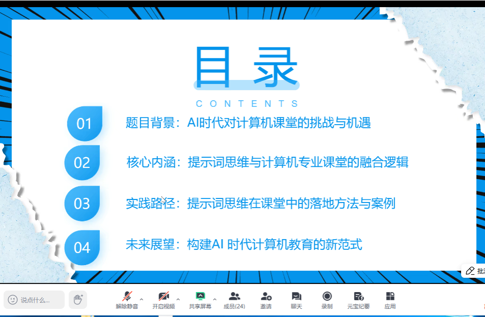 本次论坛聚焦AI时代计算机专业教学改革与人才培养,为学院教师搭建了优质的教学交流平台。与会教师纷纷表示,此次分享内容贴合教学实际,极具启发意义,后续将把提示词思维融入日常教学实践,积极探索AI与专业课堂的深度融合路径,不断推动教学创新,切实提升学生的人机协同能力与核心专业素养,为培育适应AI时代发展的计算机专业人才筑牢教学基础。