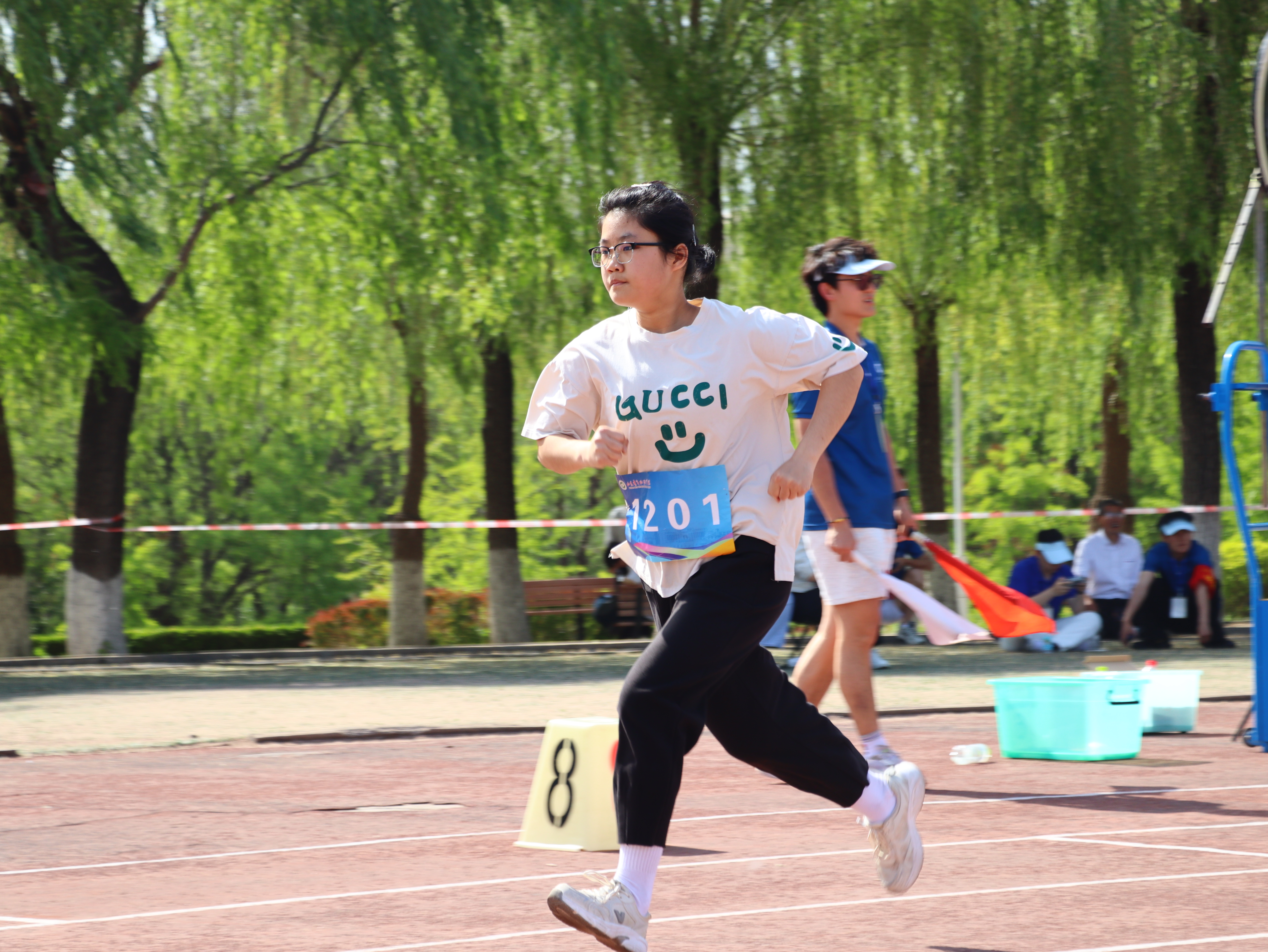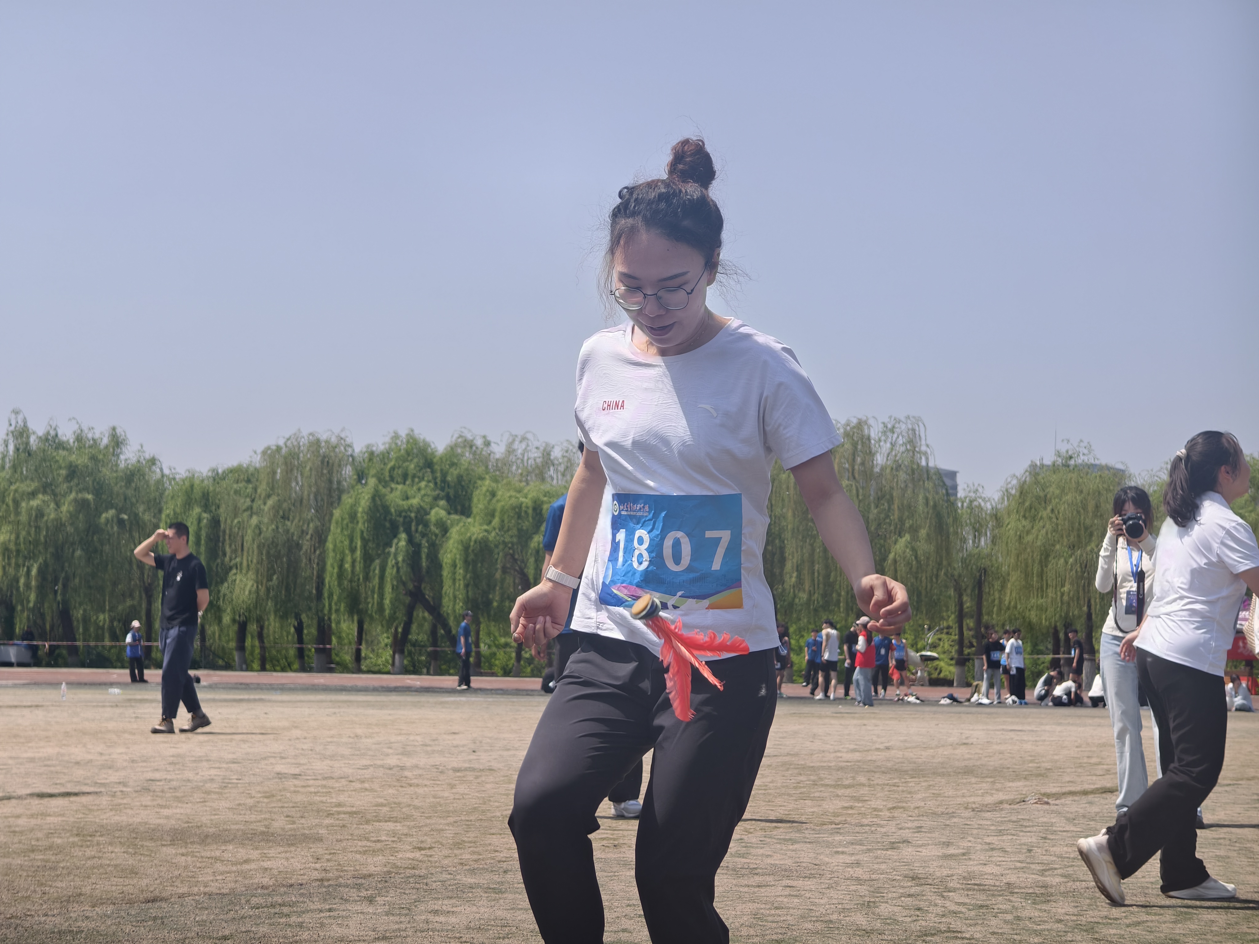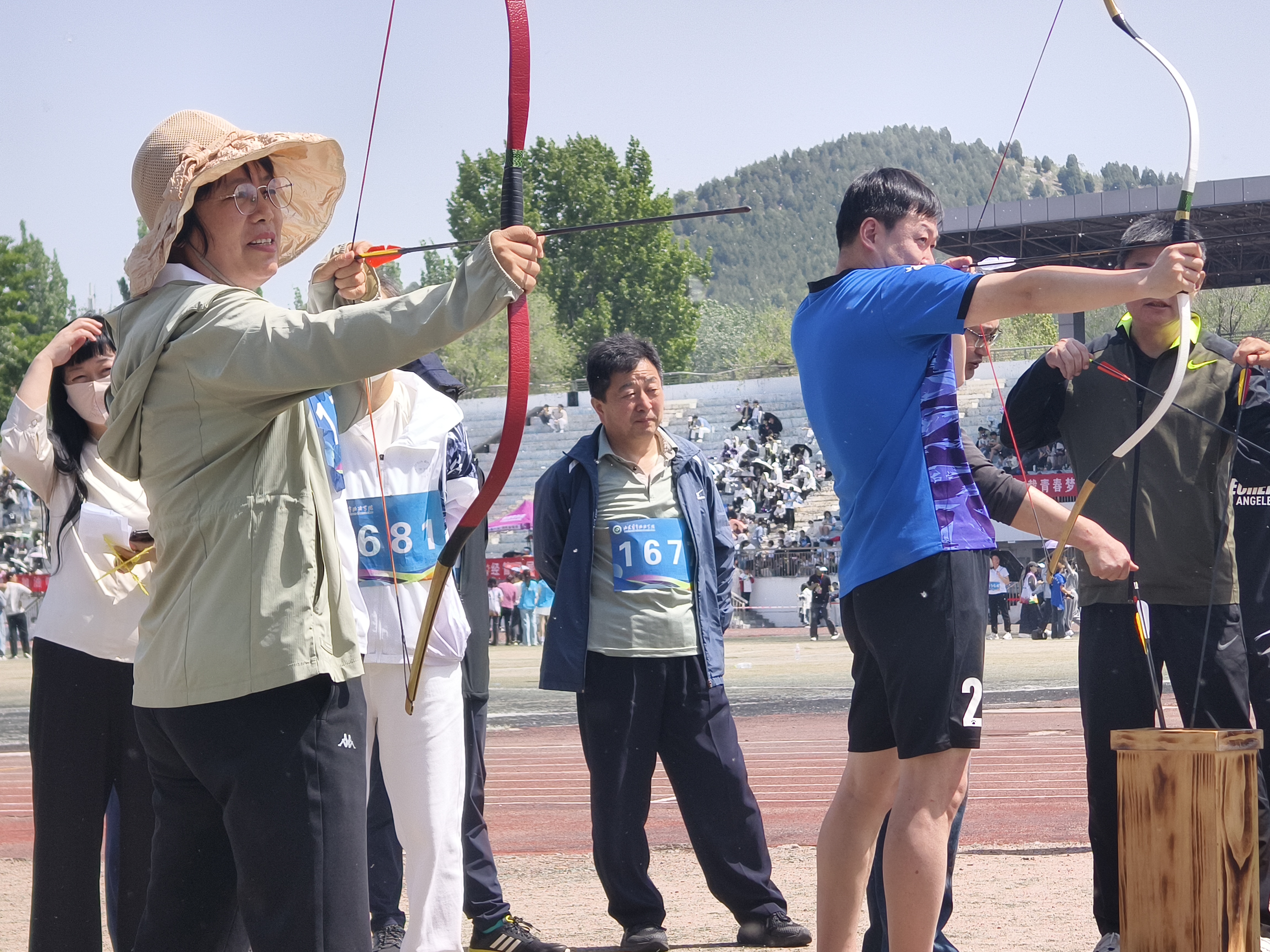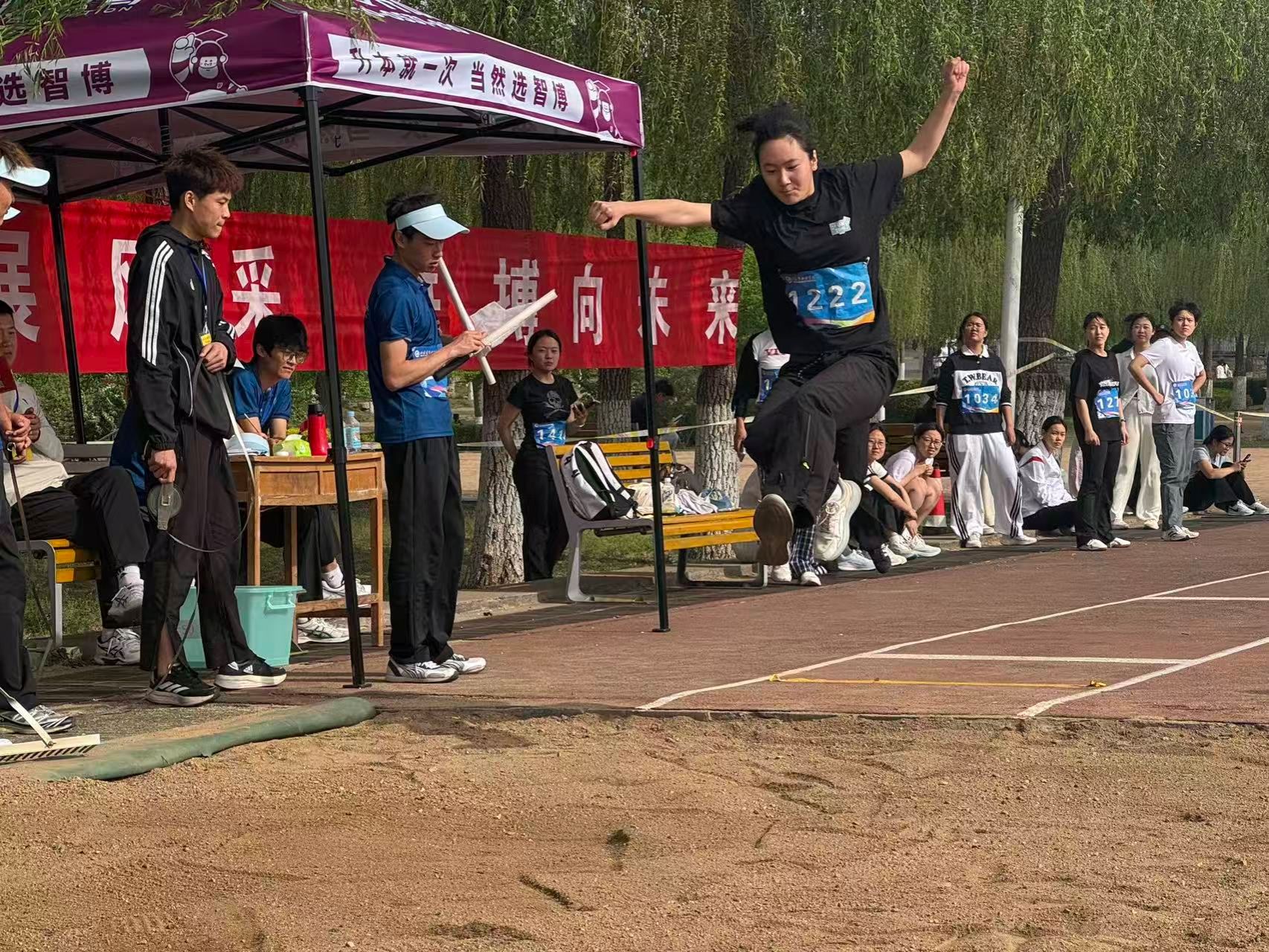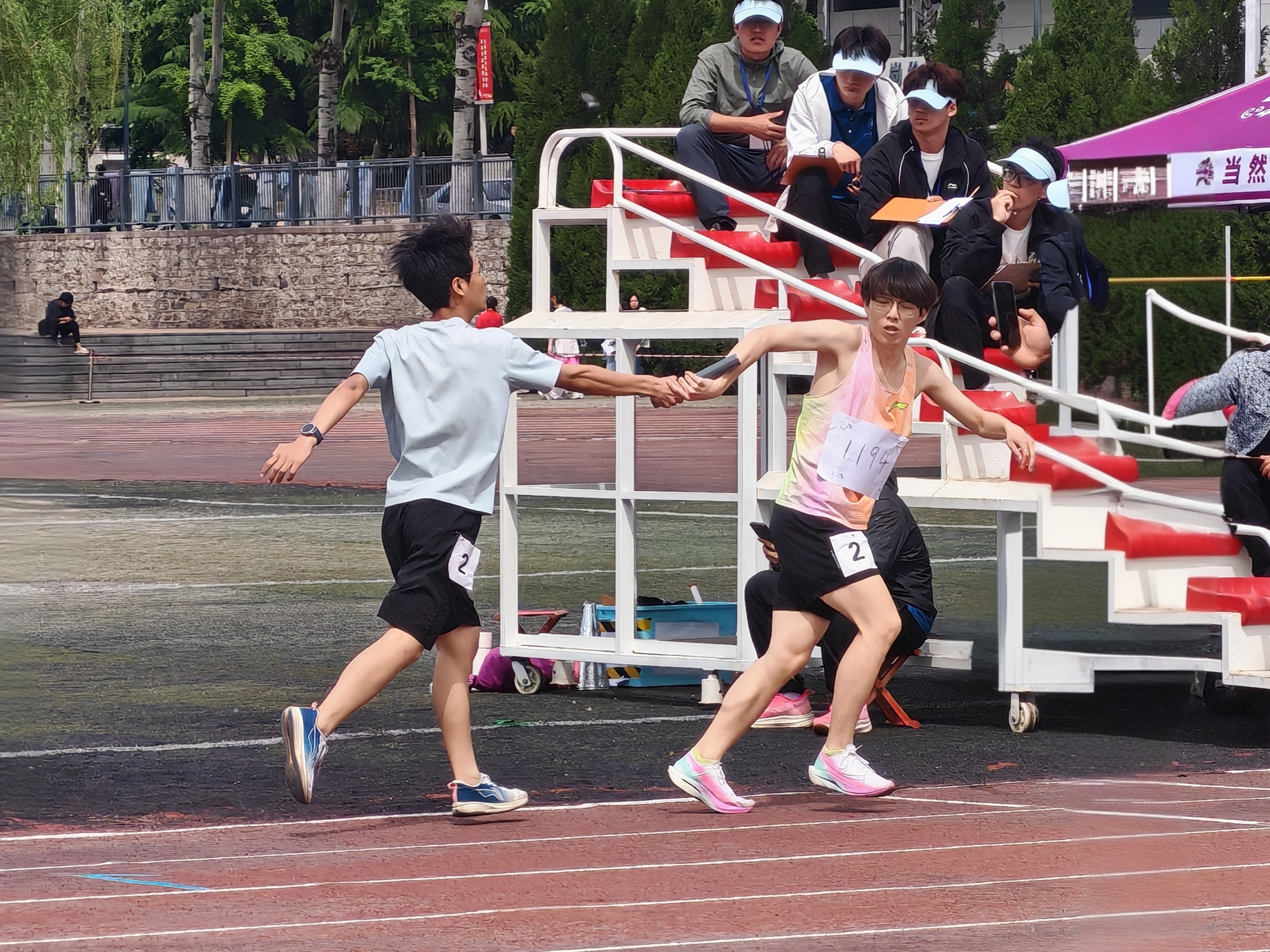 比赛现场,彩旗猎猎,呐喊震天。学院师生团结一心,同场竞技。从百米赛道的奋力冲刺到中长跑的坚韧不拔,从田赛场上的腾空一跃到接力区内的无缝交接,从八段锦展演的刚柔并济到师生拔河的凝心聚力,从跳大绳项目的默契配合到趣味项目的欢声笑语……师生运动员们配合默契、齐心协力,用汗水诠释坚持与耐力,用拼搏定义青春与热血。看台上欢呼声此起彼伏,赛场内外洋溢着浓厚的体育竞技氛围。表演方队步伐矫健、动作整齐划一,以青春活力的编排赢得了主席台与观众席的热烈掌声;团体操方队身着统一服装,伴随动感旋律变换队形,以蓬勃朝气勾勒出校园的灵动风景;彩旗方队成员身姿挺拔,手中的旗帜迎风招展,为绿茵场增添了一抹亮丽的色彩。赛场边,志愿者团队细致周到,主动承担物资补给、秩序维护和后勤保障任务,成为赛事顺利运转的坚实后盾。