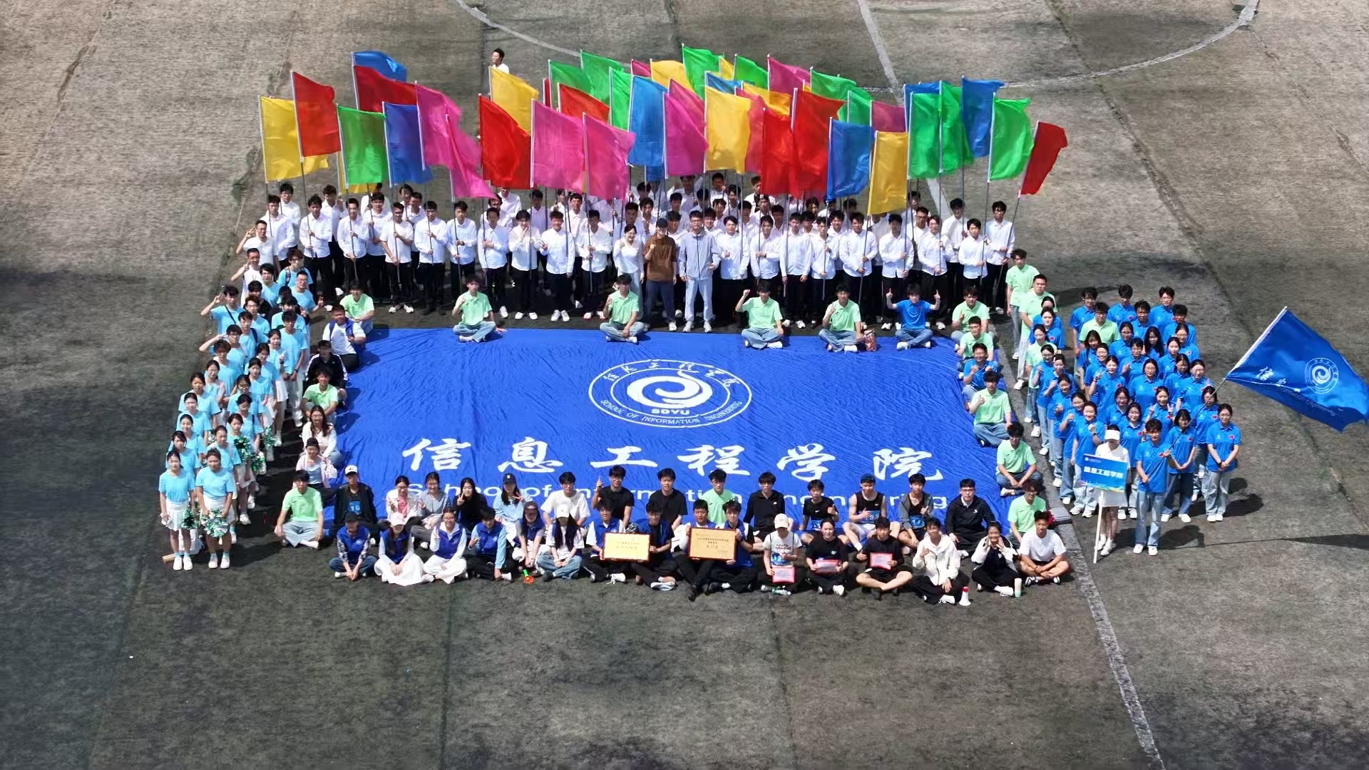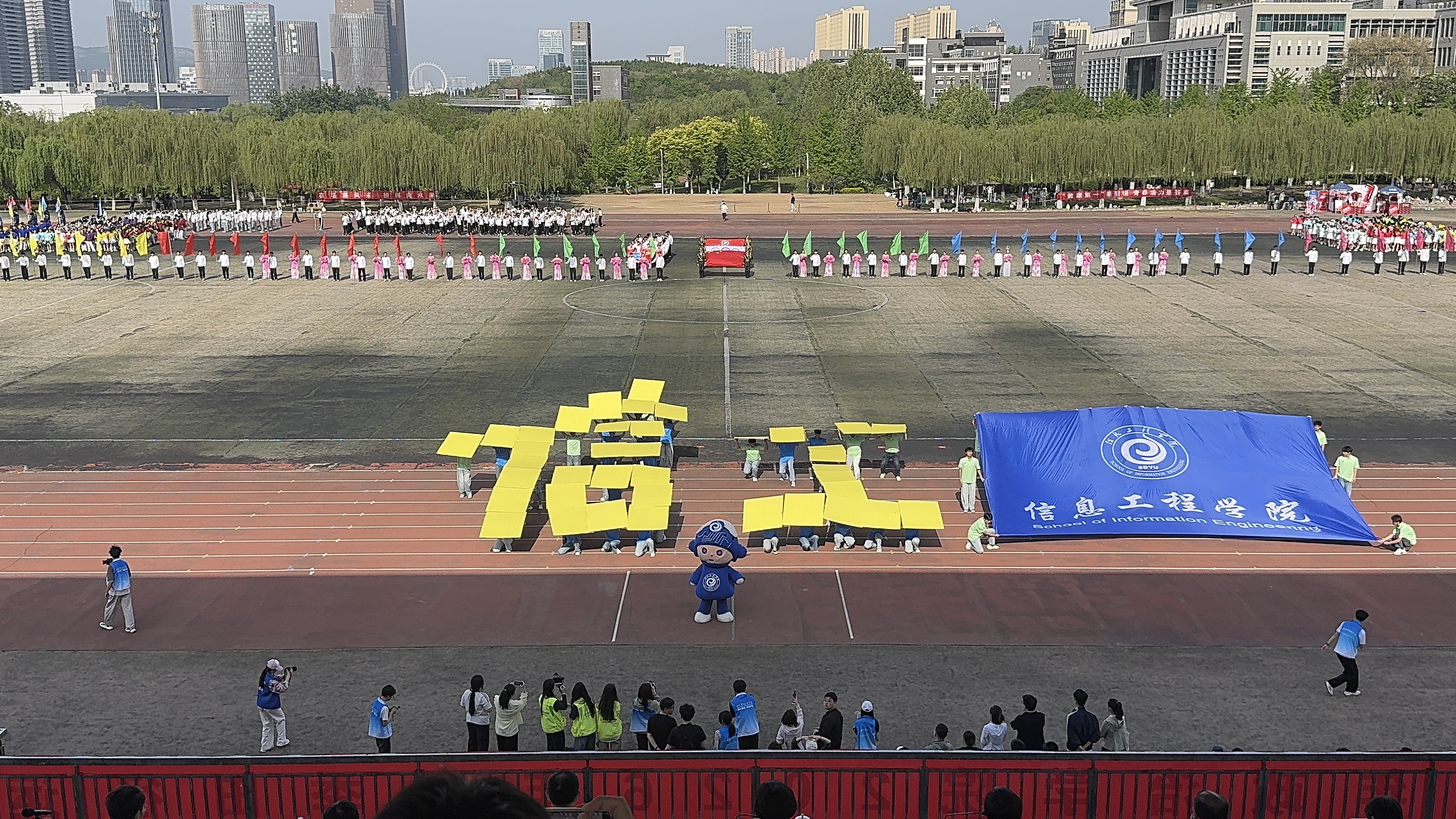 春风拂柳,活力飞扬。4月18至19日,学校2026年春季田径运动会在东体育场顺利开展。信息工程学院参赛师生以饱满的热情投入其中,在绿茵场上挥洒汗水,以广泛的参与度、高度的凝聚力和强烈的集体感圆满完成各项赛事任务,最终取得“学生组团体总分第一名”和“精神文明奖”双丰收的优异成绩。