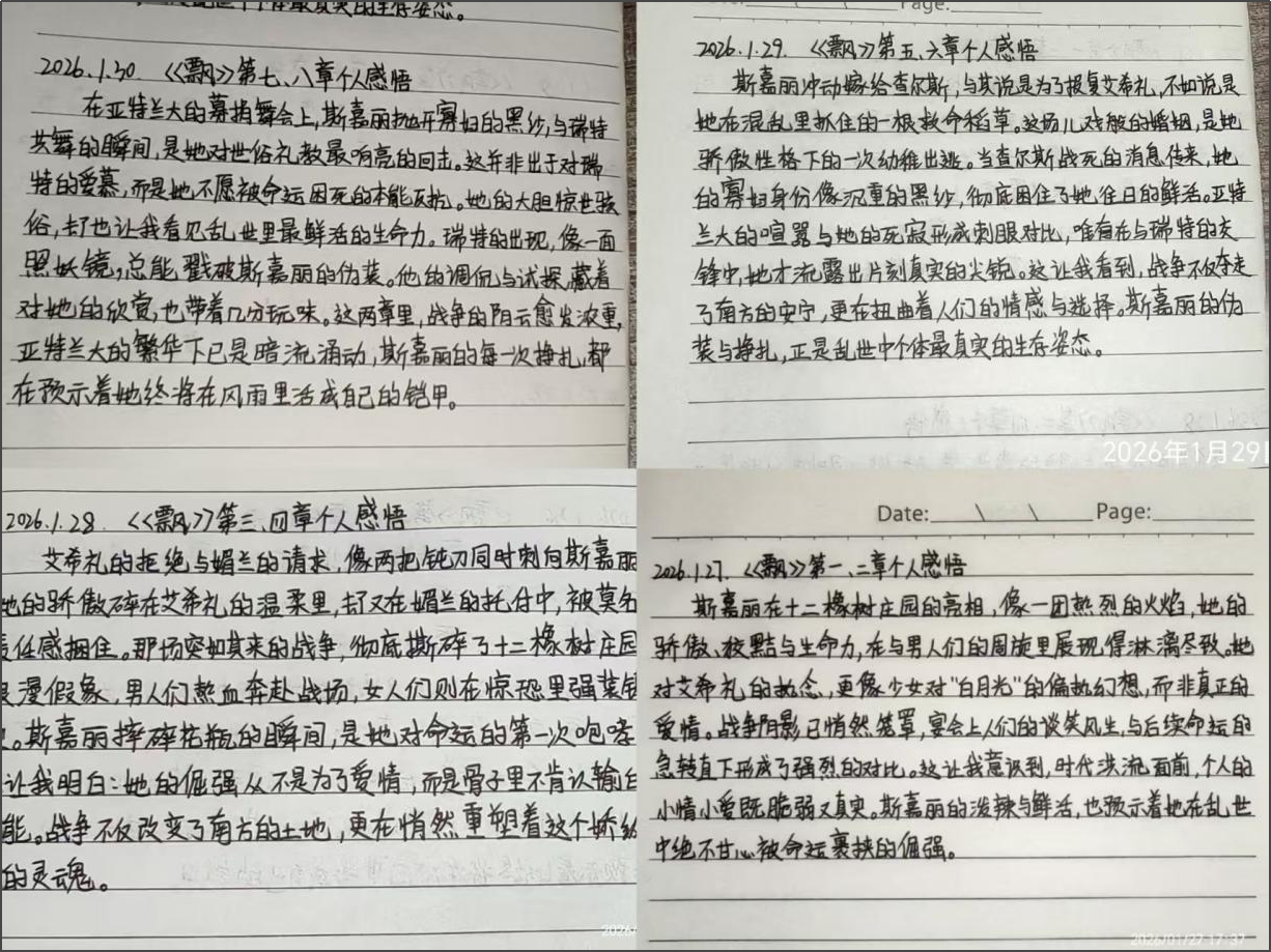 品读经典,涵养人文精神底蕴。学院同步启动“精读一部思想文化经典”主题阅读活动,倡导学生静心阅读经典名著与红色文献,在书香中沉淀思想、涵养精神。活动期间,学院学生借助线上平台分享阅读进度、摘录金句感悟、撰写读书心得,营造浓厚的学习氛围。活动着力引导学生在阅读中厚植家国情怀、提升思想境界,实现知识学习与价值塑造的有机融合。大家纷纷表示,静下心来读完一本好书,不仅拓宽了视野,更丰富了自身对人生方向的体悟。