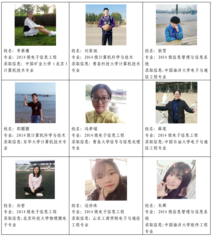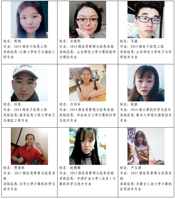 信息工程学院2018—2019届毕业生风采(考研)【部分】