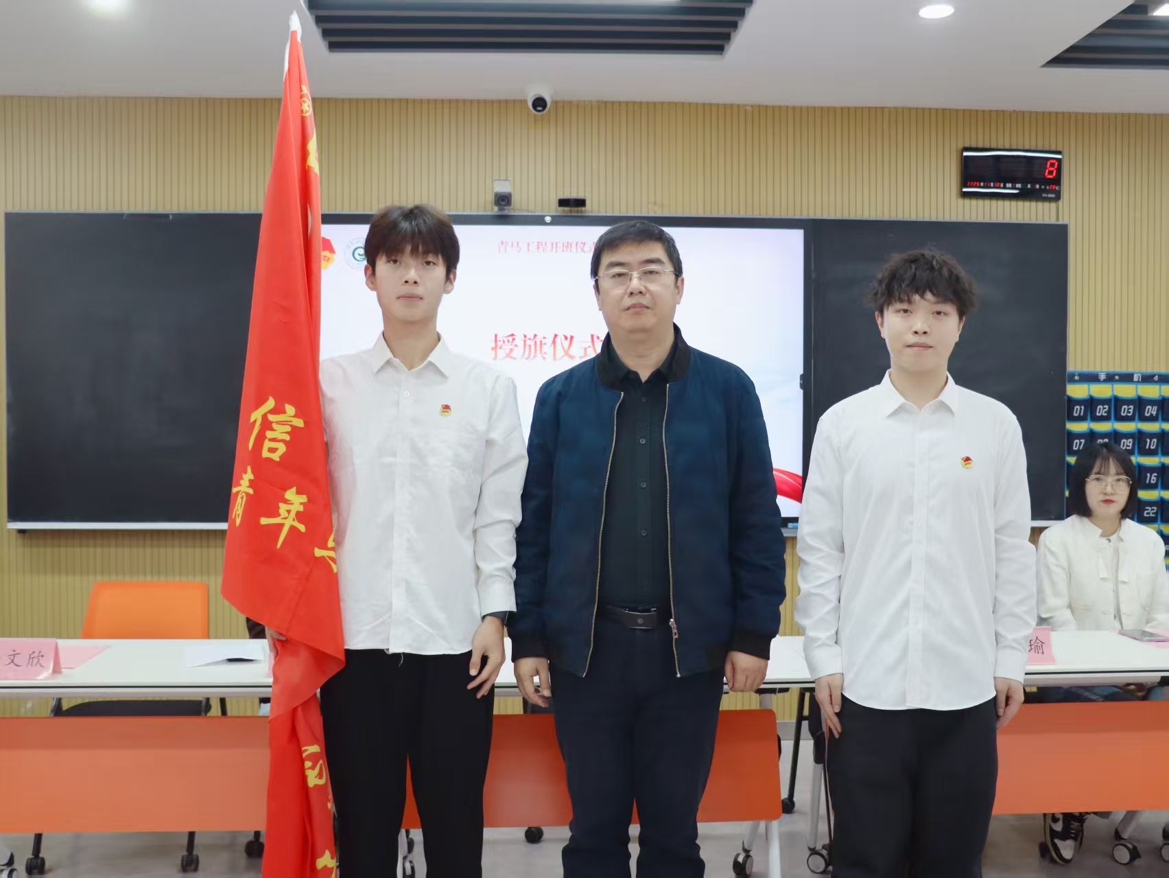 仪式最后,马骋为2025-2026学年青马班授旗,旗帜的传递象征着青马精神的接续与使命的传承,标志着新一学年“青马工程”培训工作正式启动。