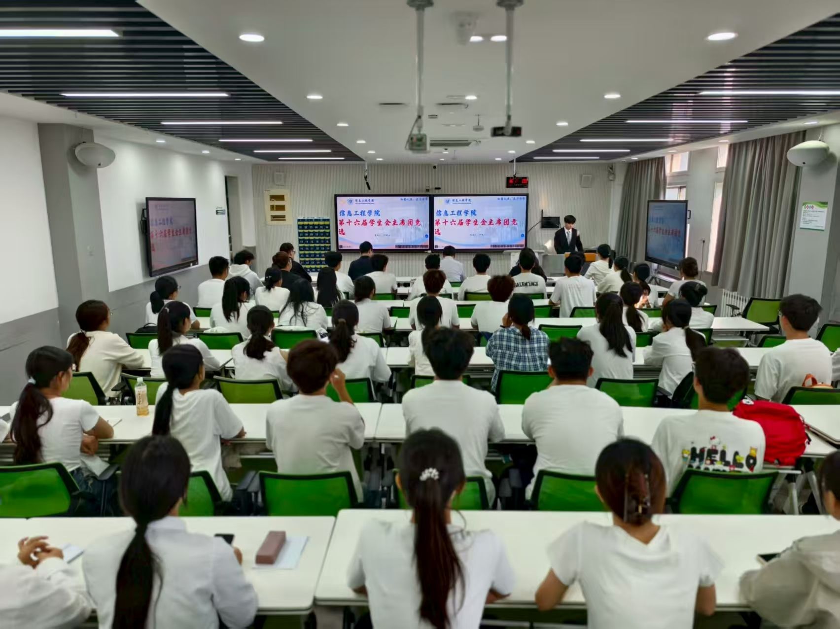 为优化学生干部队伍结构,提升团学骨干的综合素质与履职能力,9月24日,信息工程学院在知行楼505举办第十六届主席团竞选答辩会暨第七期“青蓝计划”团学骨干培训。学院党委副书记马骋、全体辅导员及新一届学生会成员、班干部共计150余人参加开班仪式。