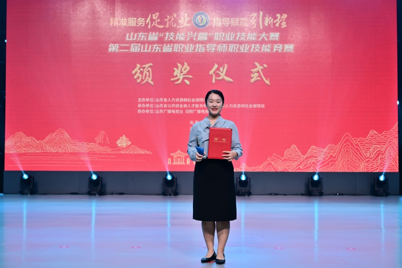 近日,第二届山东省职业指导师职业技能竞赛在日照圆满落幕。本次竞赛以“精准服务促就业 指导赋能引新程”为主题,汇聚了来自全省各级公共就业人才服务机构、高等院校、技工院校及人力资源服务机构的47名职业指导精英。我校信息工程学院2010级信息管理与信息系统专业校友张新依凭借扎实的专业功底和出色的现场表现,最终荣获大赛公共就业组三等奖(总成绩第五名)。